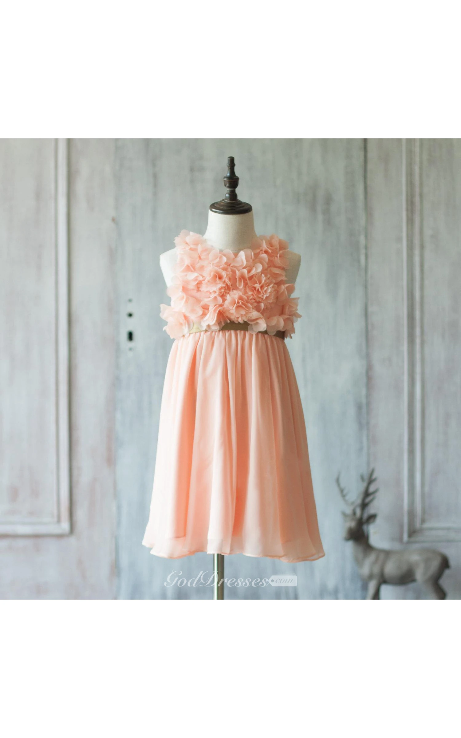 High Neck Flower Bodice A-line Chiffon Long Dress Pleated Skirt