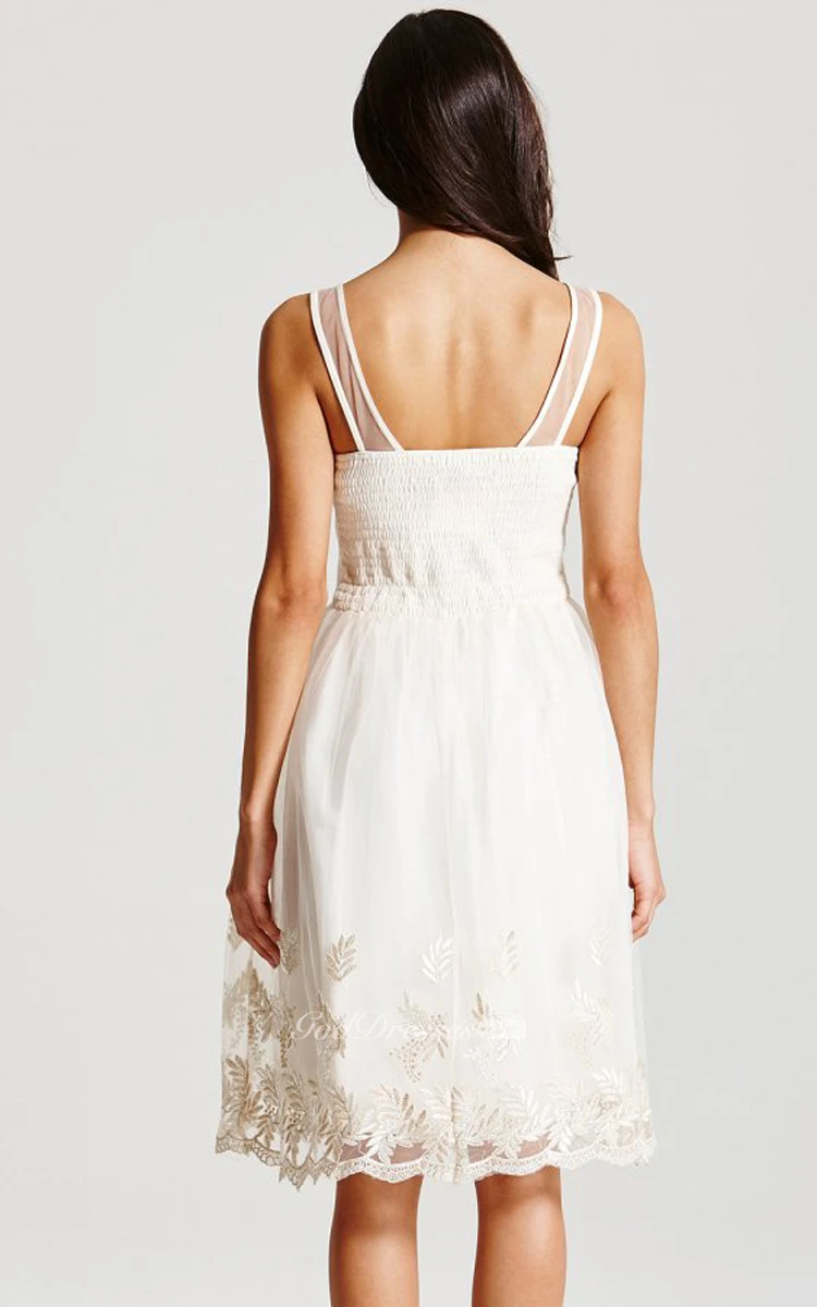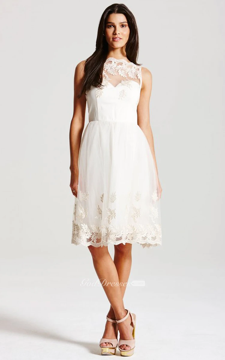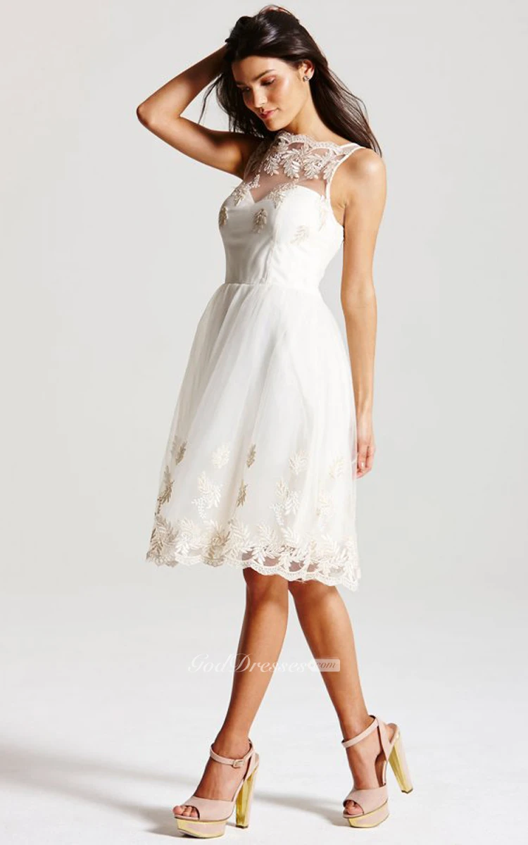High-Neck Knee-Length Dress With Lace And Illusion Straps
