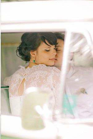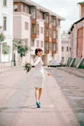 High Neck Lace Long Sleeve Knee-Length Wedding Dress