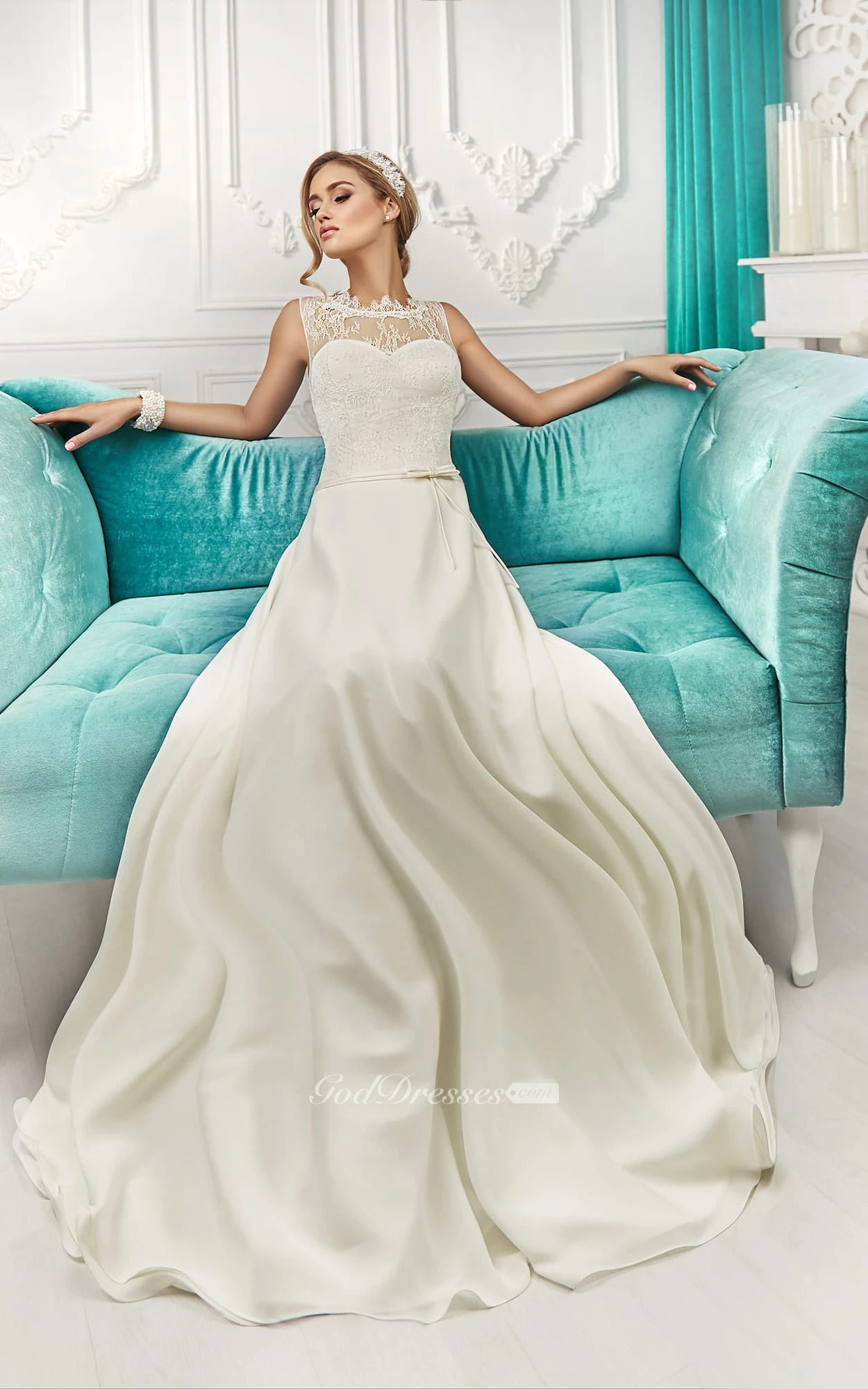 I like the lace and satin wedding dress. I bought it for my wedding. It's simple and comfortable satin material.