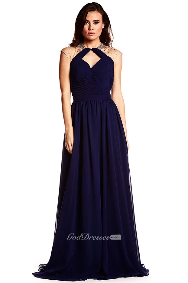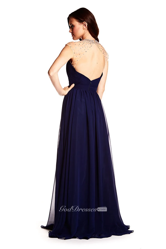 High Neck Sleeveless Beaded Chiffon Prom Dress With Keyhole