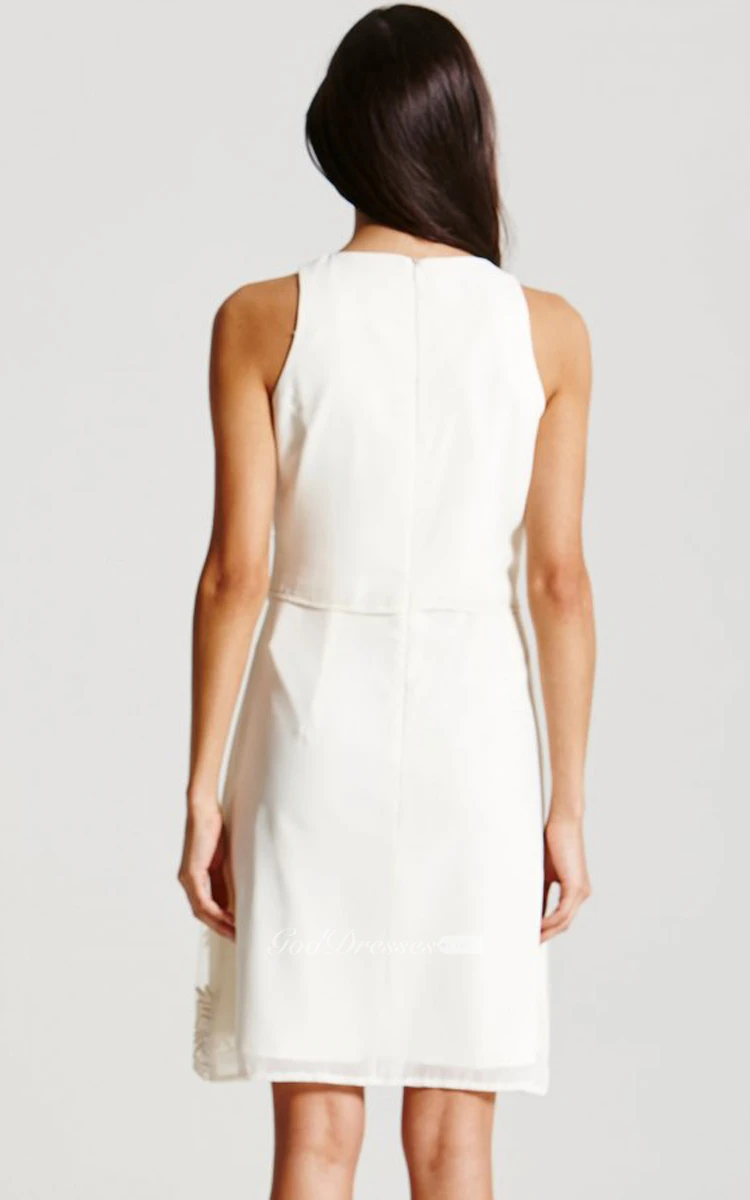 High-Neck Sleeveless Knee-Length Dress With Lace