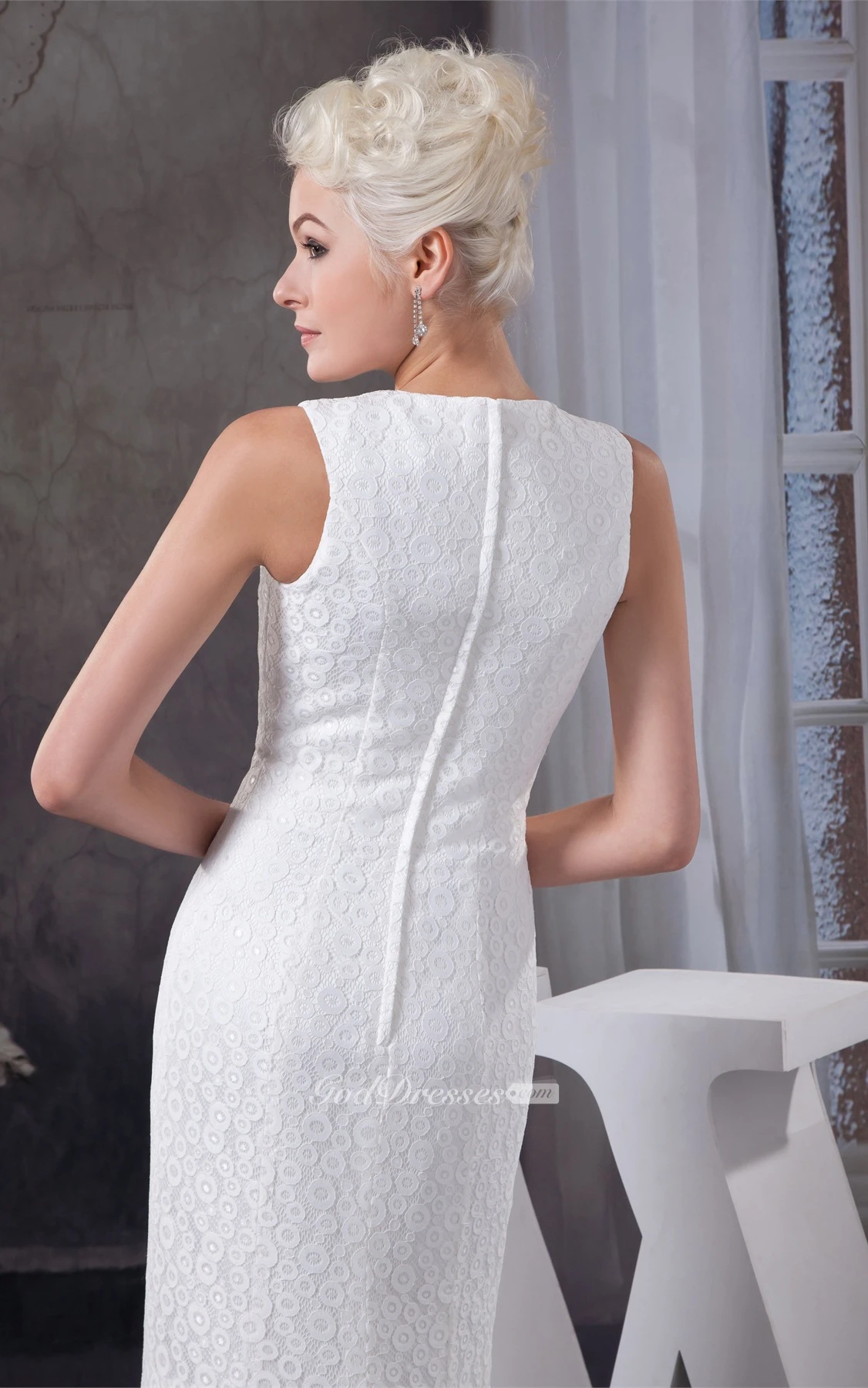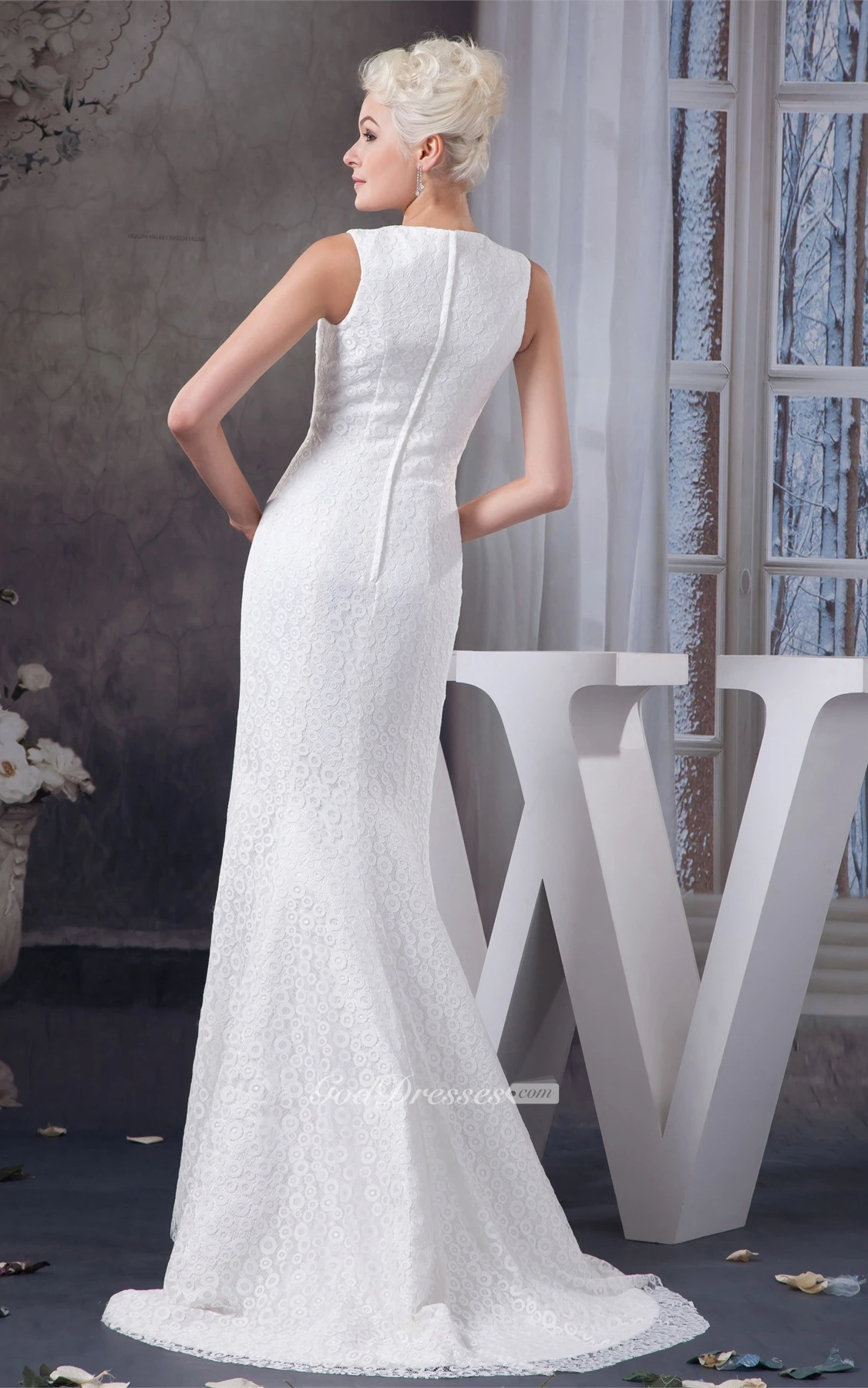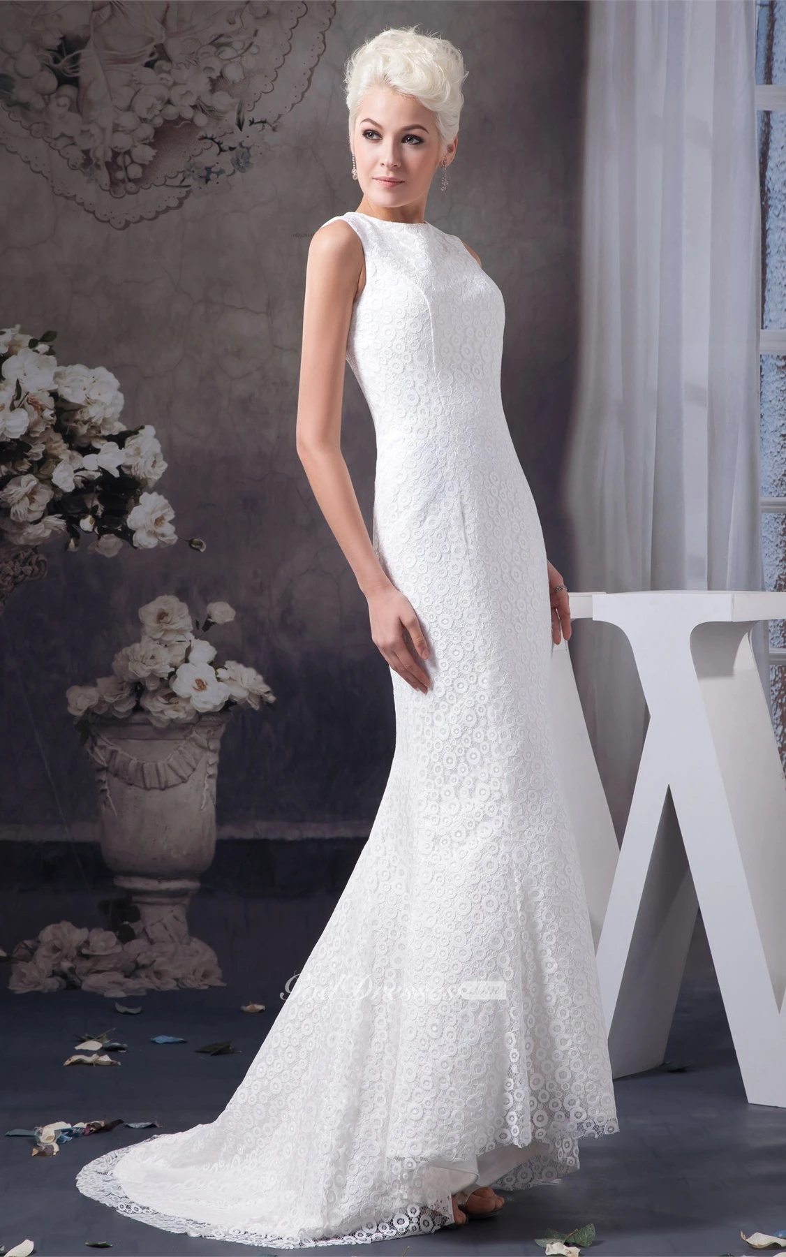 High-Neck Sleeveless Lace Dress With Sweep Train