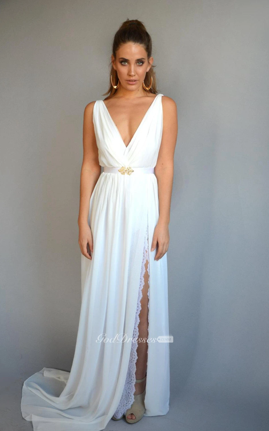 Sheath Chiffon Split Front Sleeveless Dress With Sweep Train