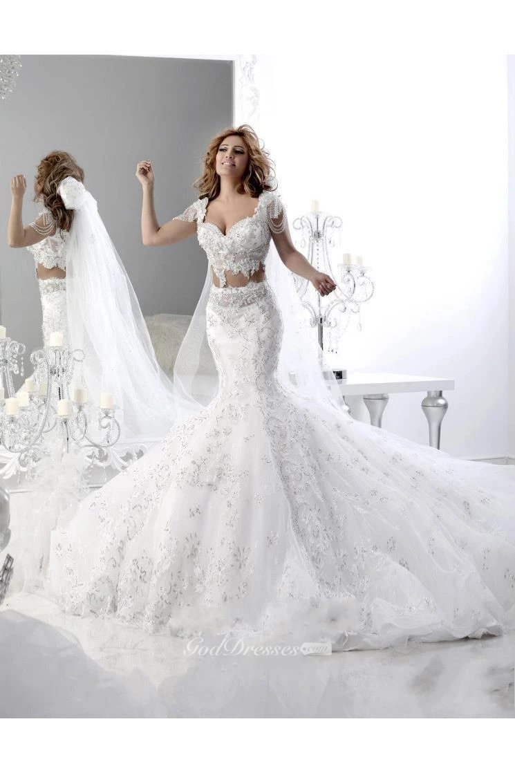 Hot Sale Cap Sleeve Arabian Mermaid Wedding Dress Lace Appliques