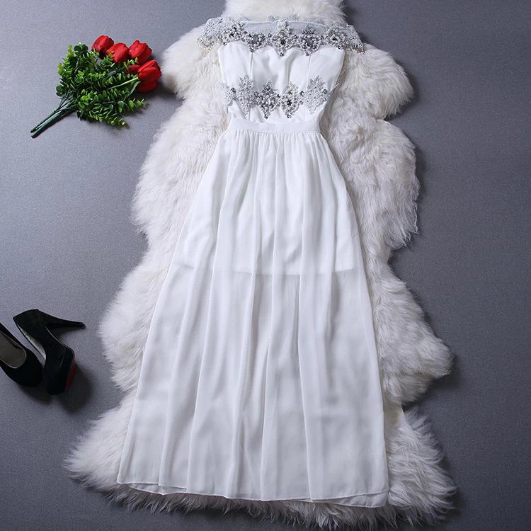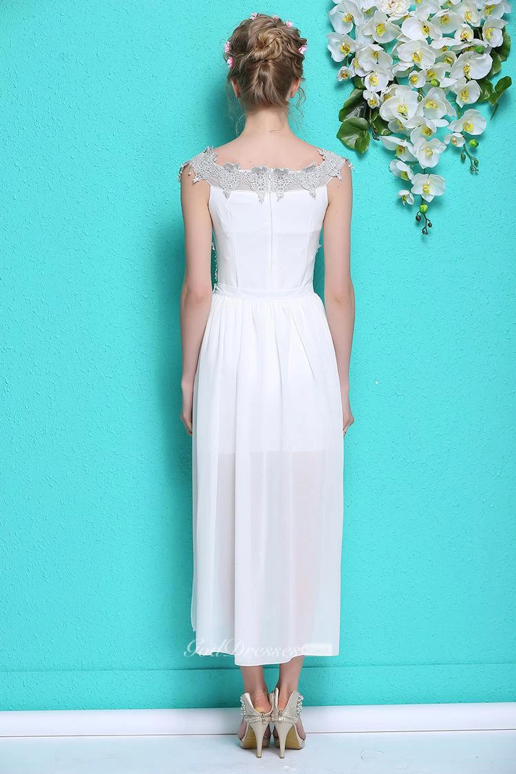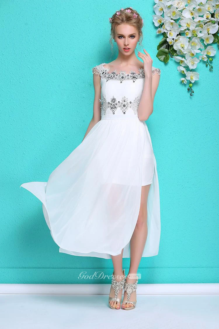 Hot Summer White Chiffon Prom Dress With Beadings