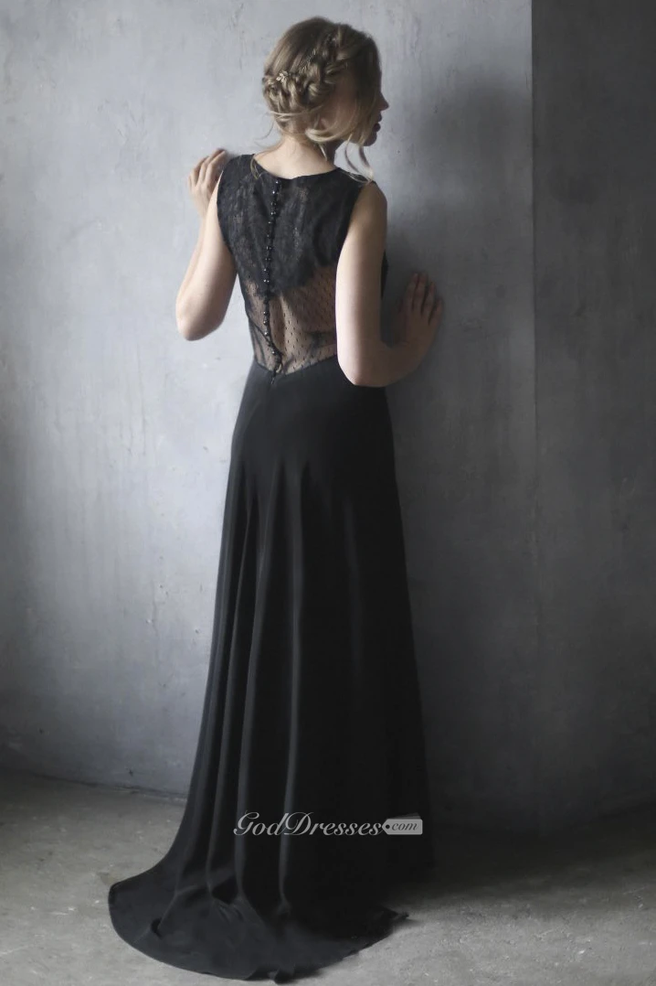 Illusion Back Sleeveless Elegant Sheath Chiffon Lace Wedding Gown With Buttons
