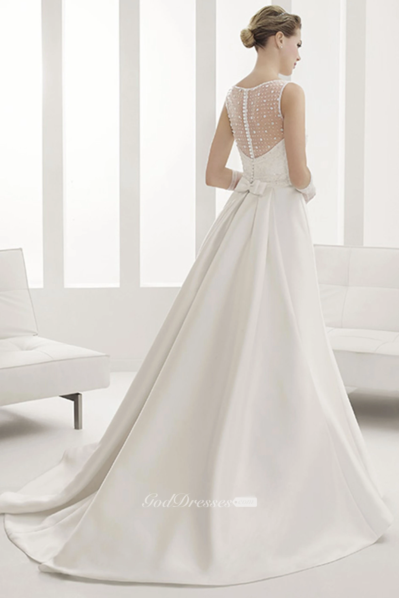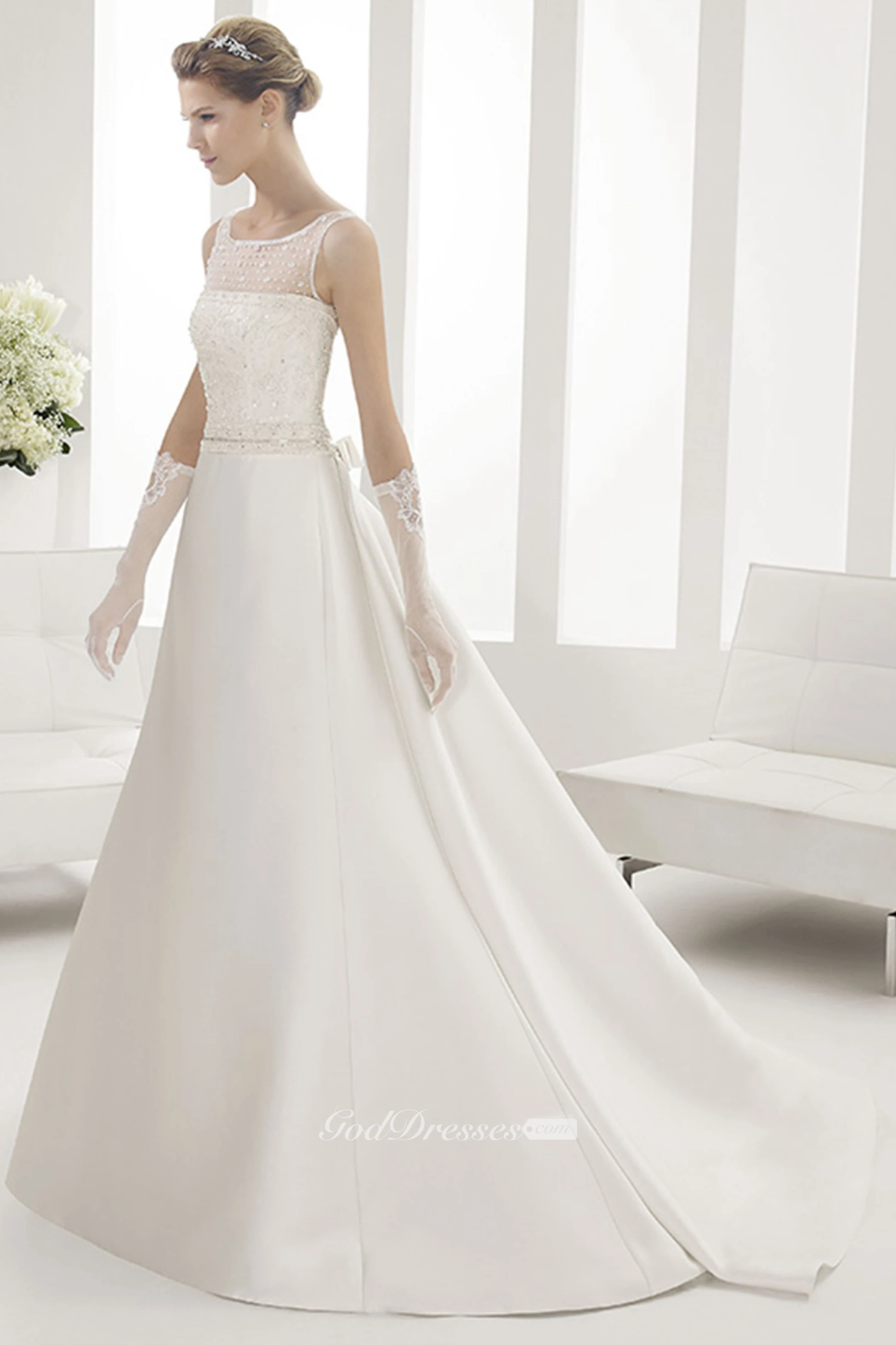 Illusion Jewel Neck Satin Wedding Gown With Crystal Bodice