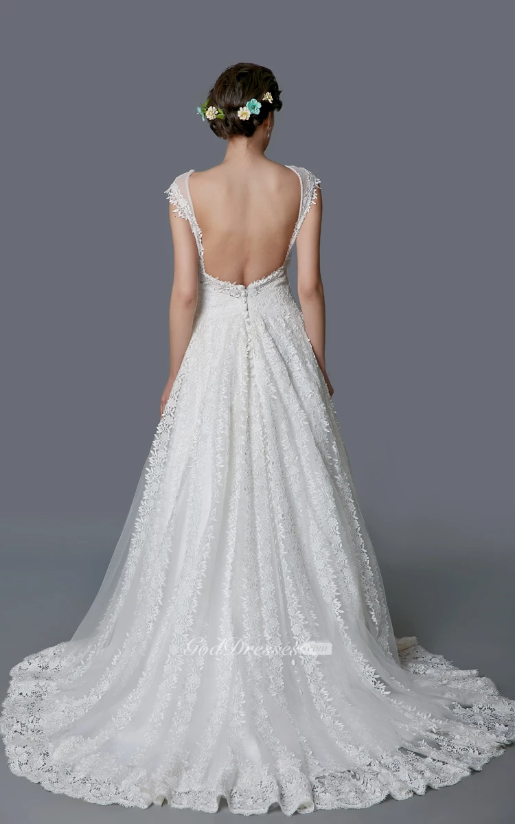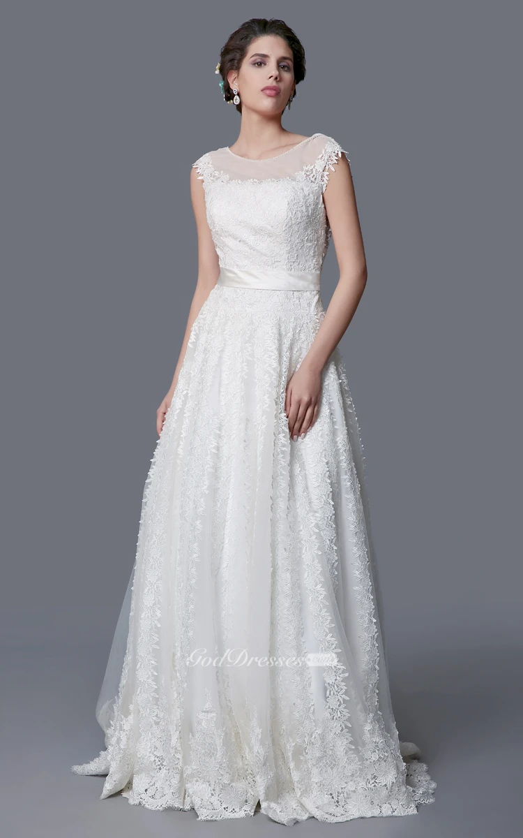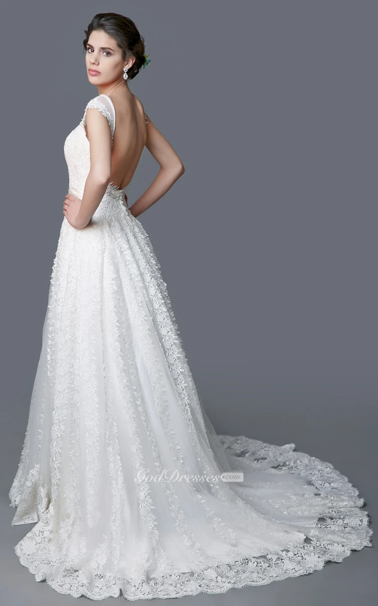 Illusion Jewel Neckline Backless A-line Lace Gown