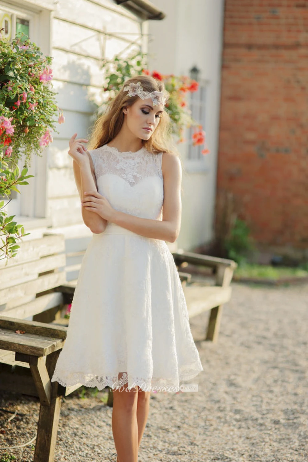 Illusion Jewelry Neckline A-line Sleeveless Knee-length Lace Wedding Dress