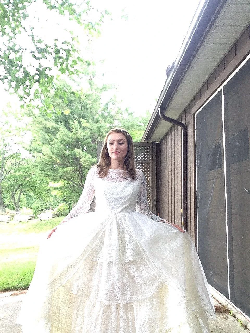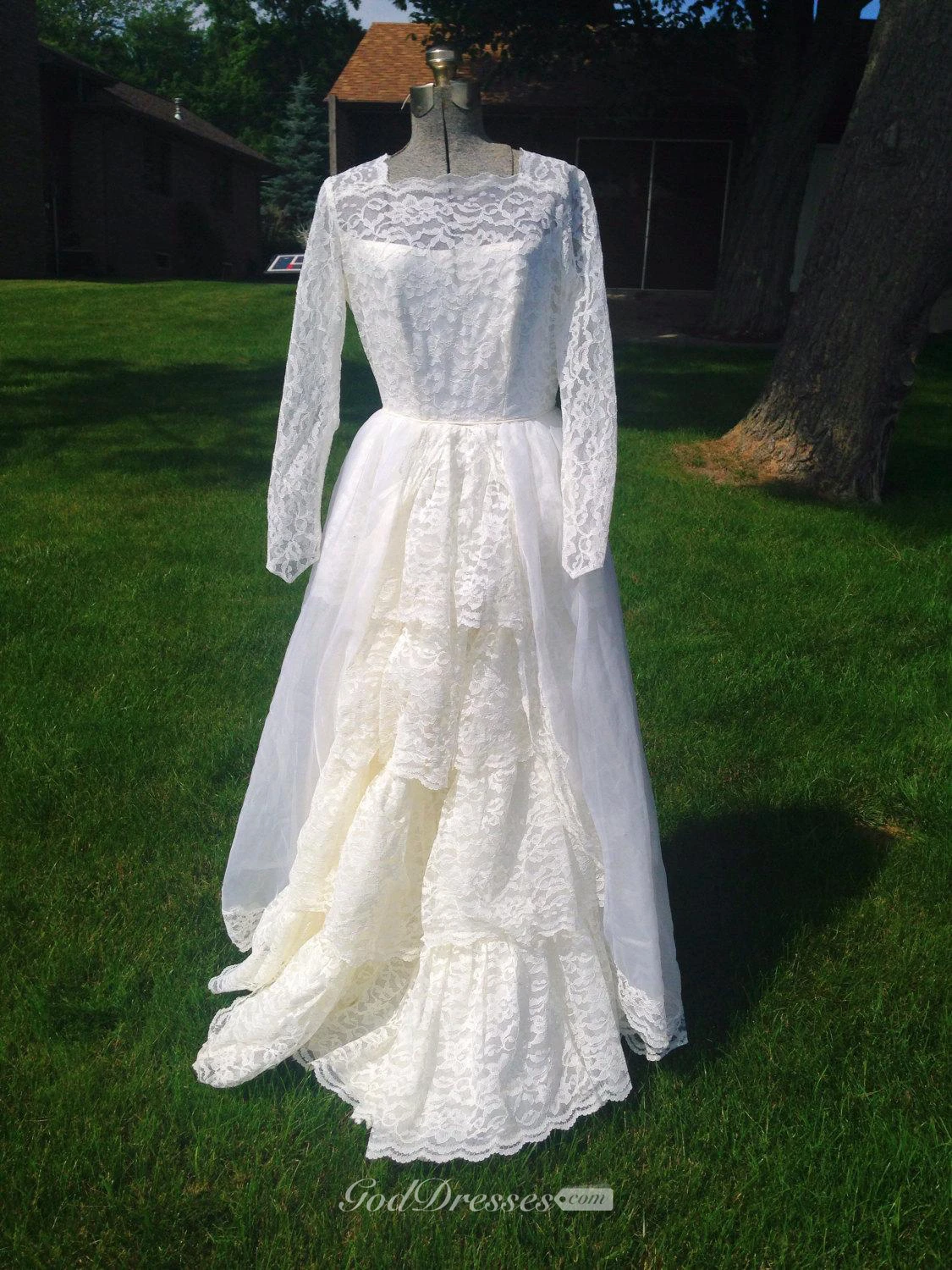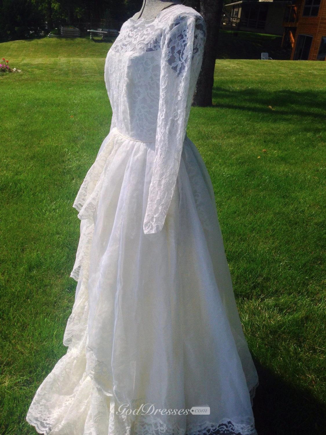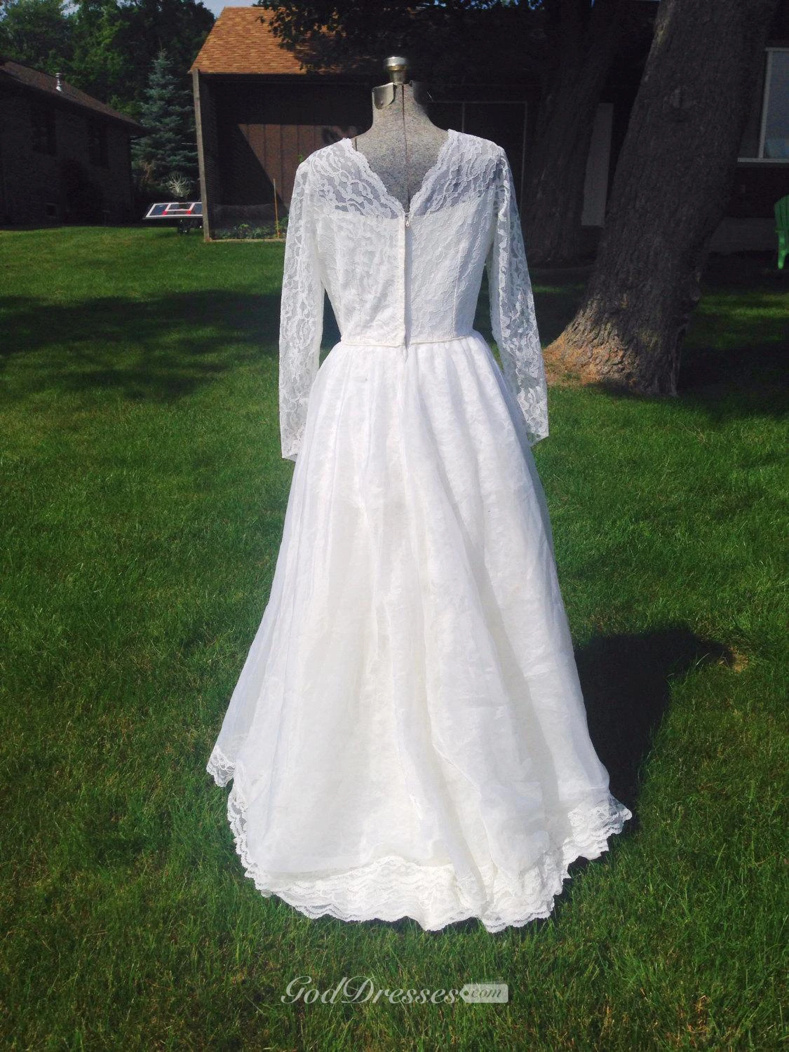 Illusion Long Lace Sleeve Bateau Neck A-Line Dress With Low-V Back