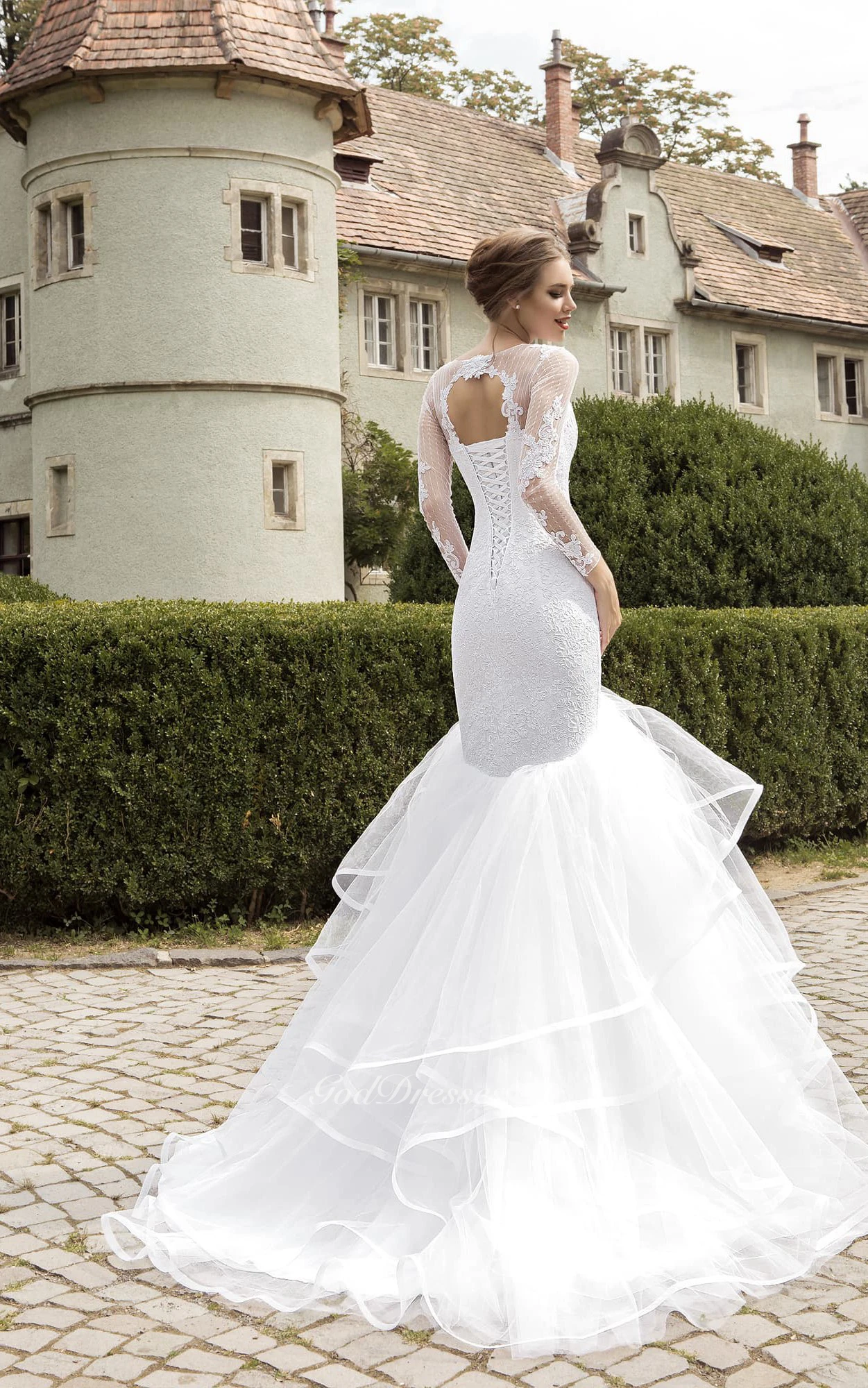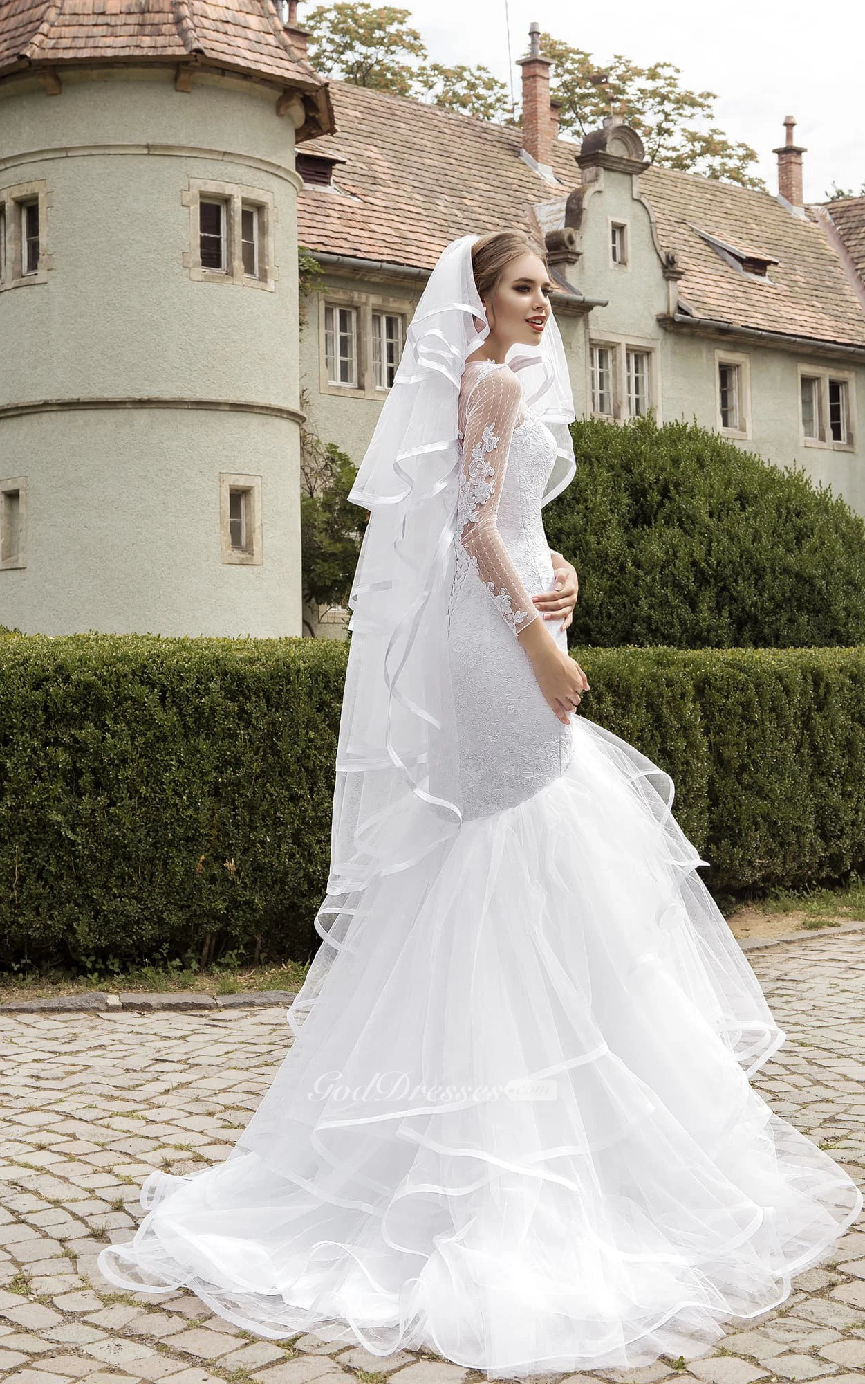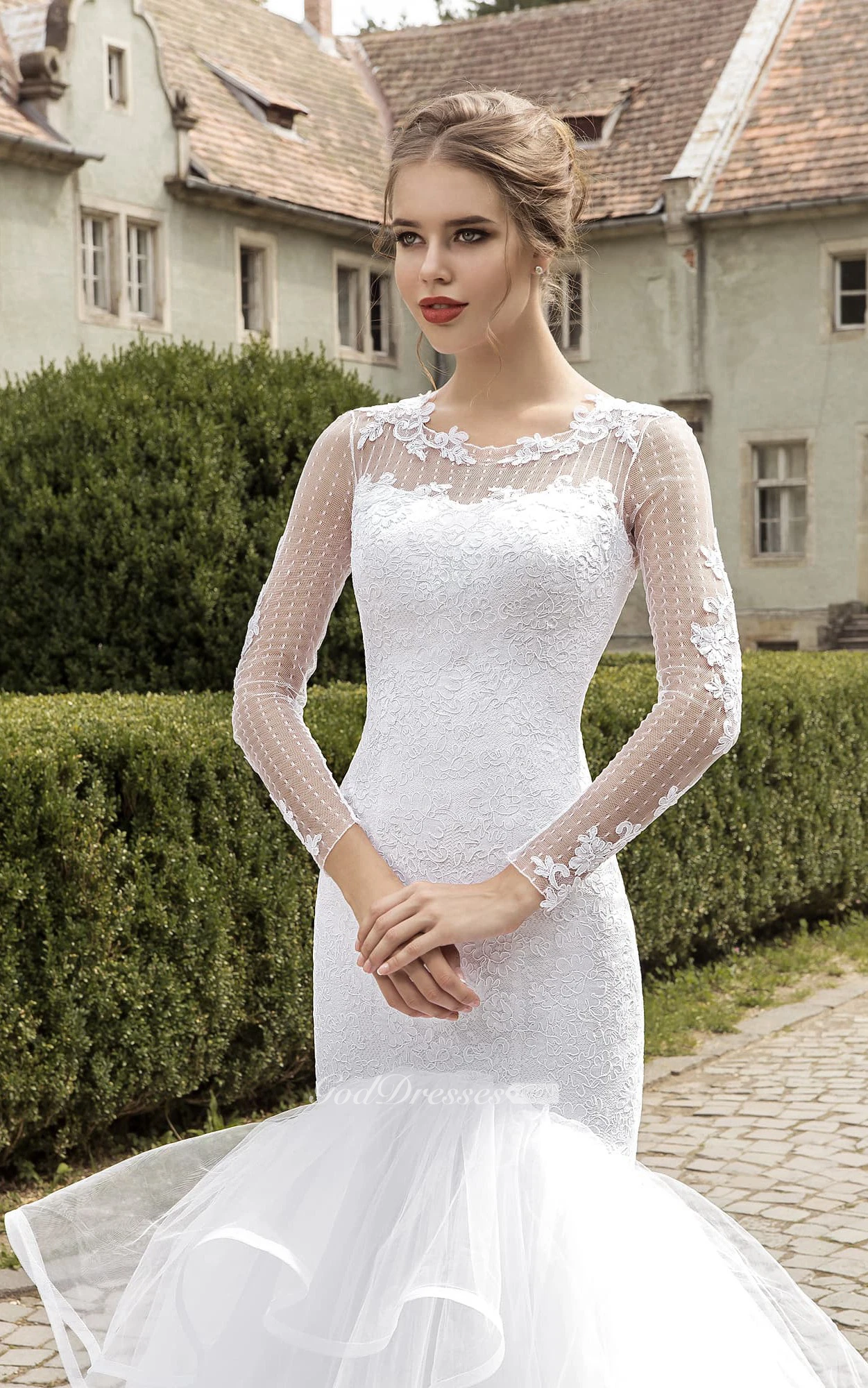 Illusion Long Sleeve Appliques Mermaid Dress