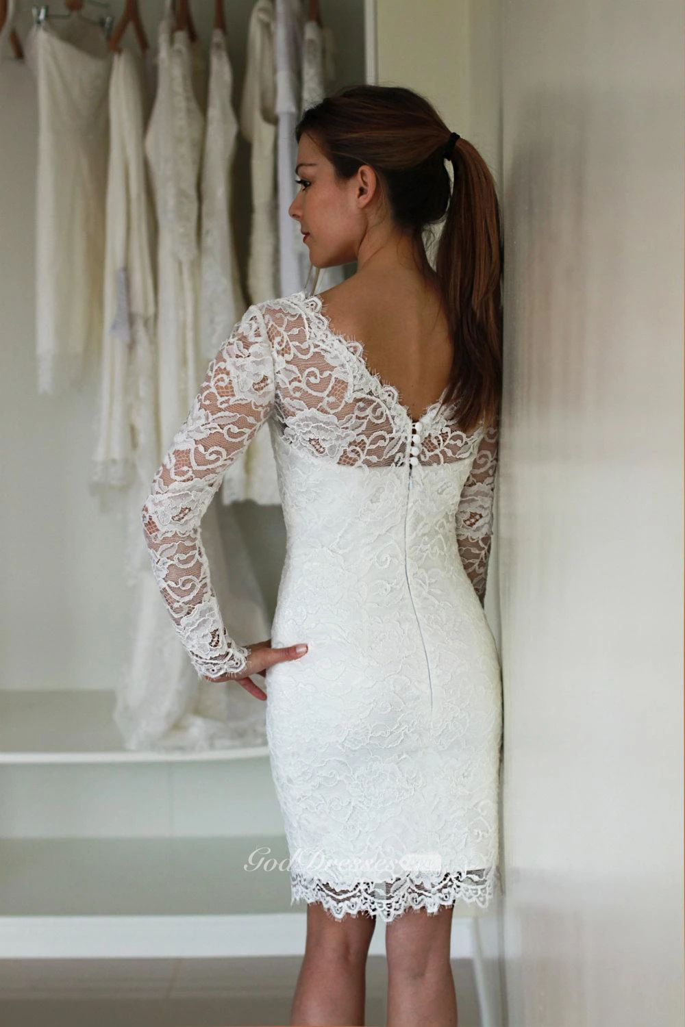 The short dress is perfect. It's very slim, just what I wanted. The quality is great. I ordered a custom size. Shipping to the U.S. was no problem and communication was easy. I would definitely recommend Dorris Wedding.