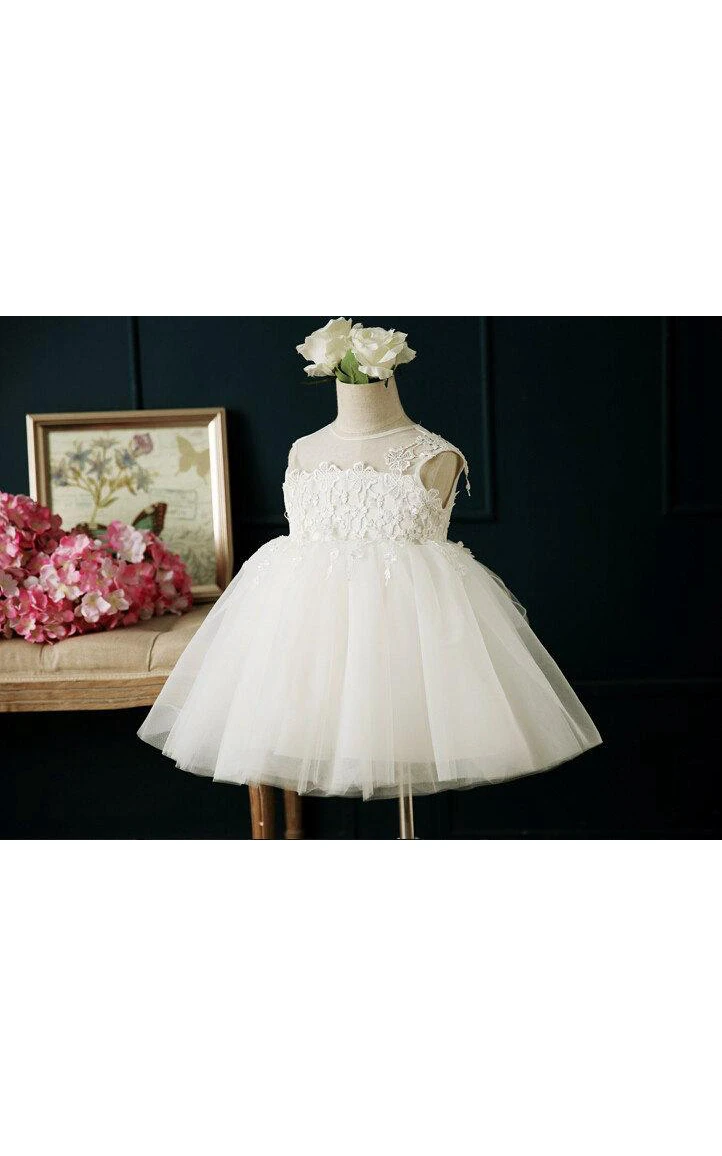 Illusion Neckline Sleeveless Pleated A-line Tulle Short Dress With Appliques