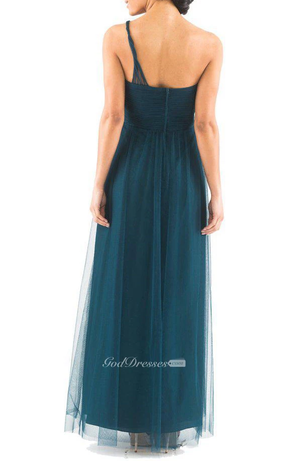 Illusion One Shoulder Tulle Ankle-length Dress
