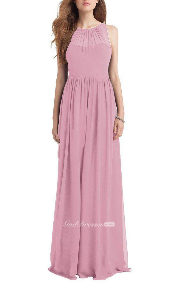 Illusion Ruched Long Bridesmaid Dress with Keyhole Back
