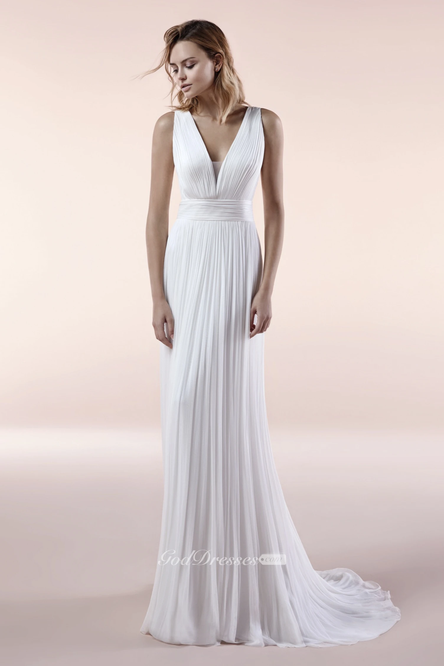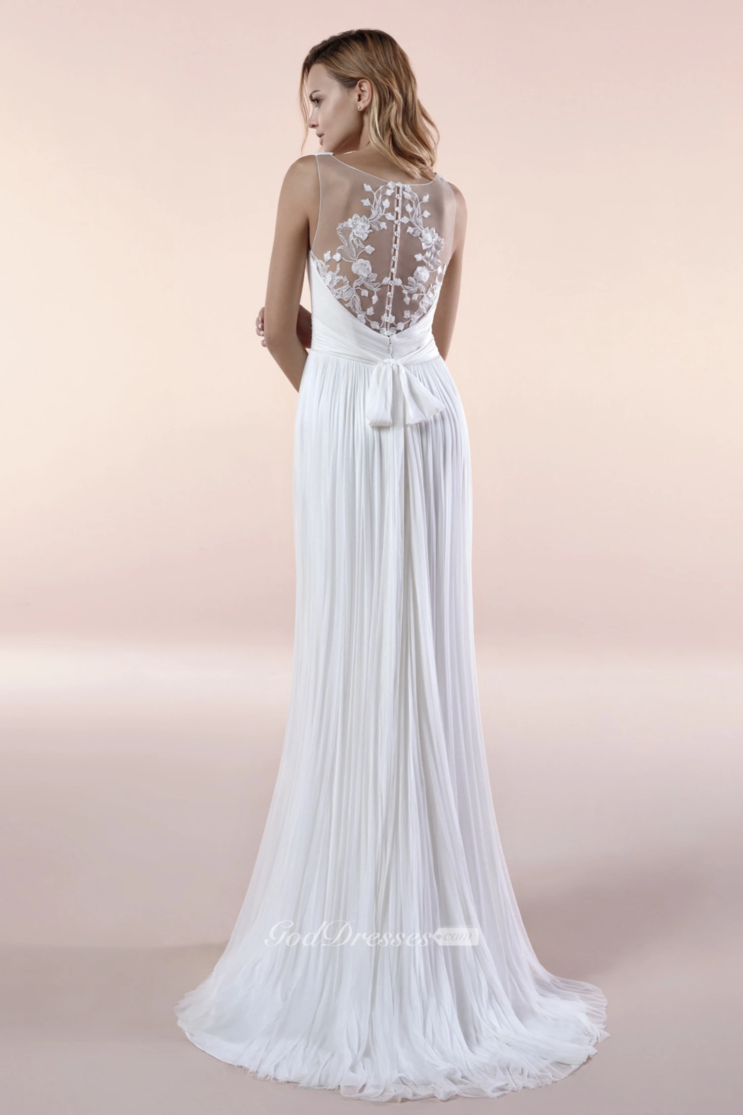 Illusion Sleeveless Deep V-neck Chiffon Gown With Sash And Pleats