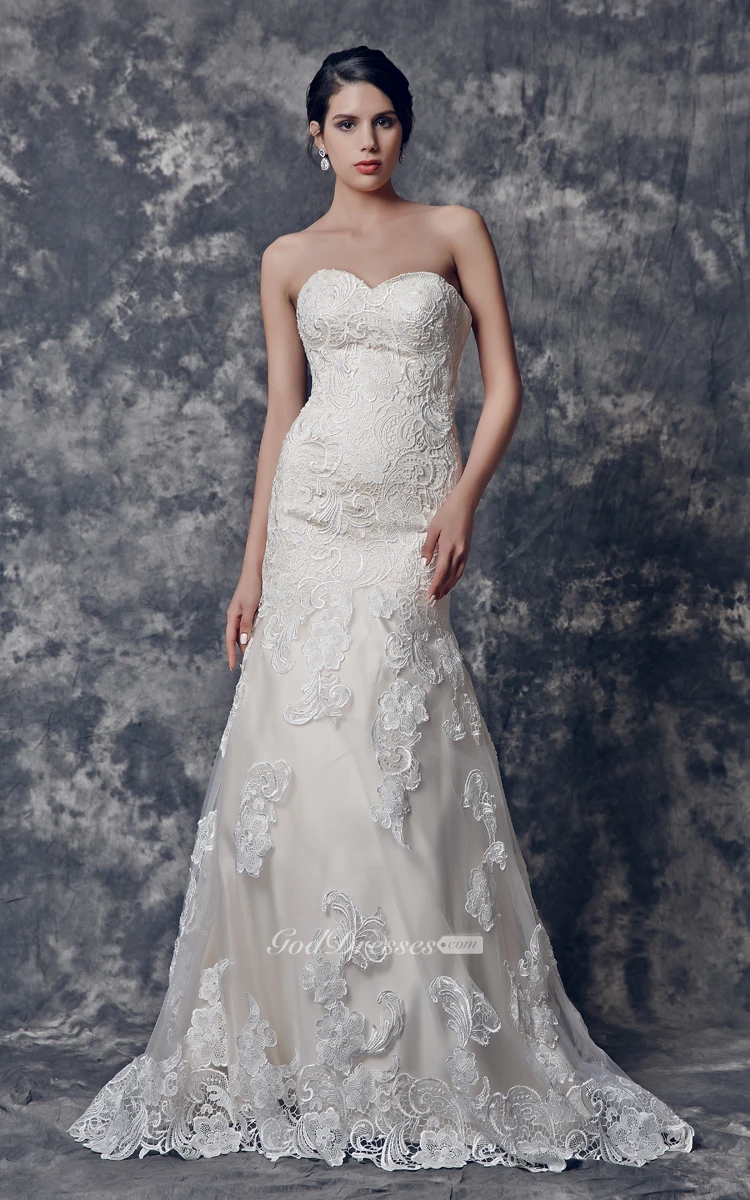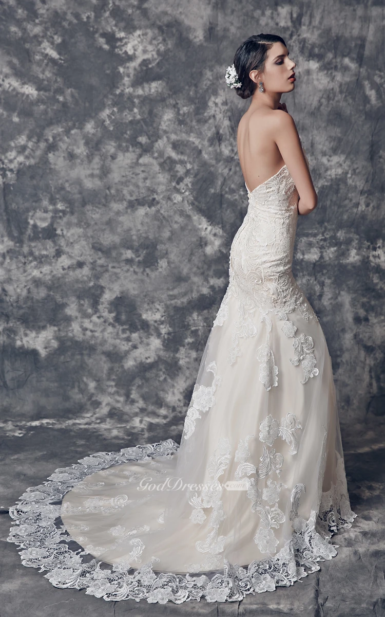 Inspired Sweetheart Mermaid Lace Dress With V-back