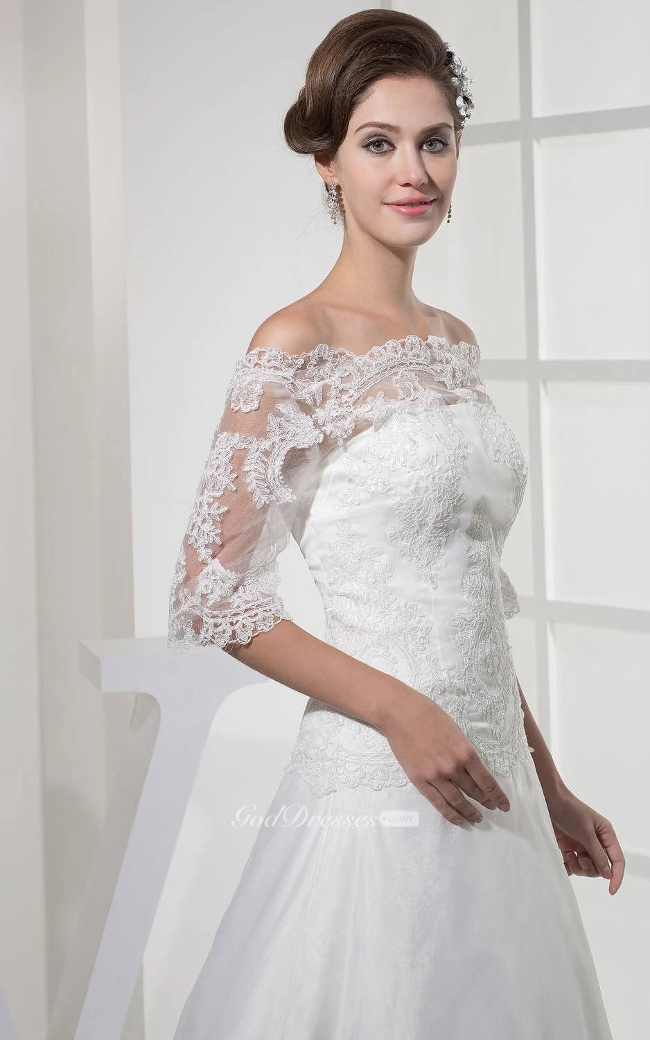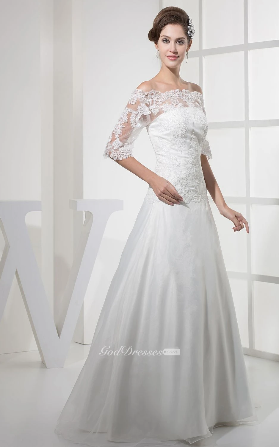 Intricate Off-The-Shoulder Half-Sleeve A-Line Dress With Appliques