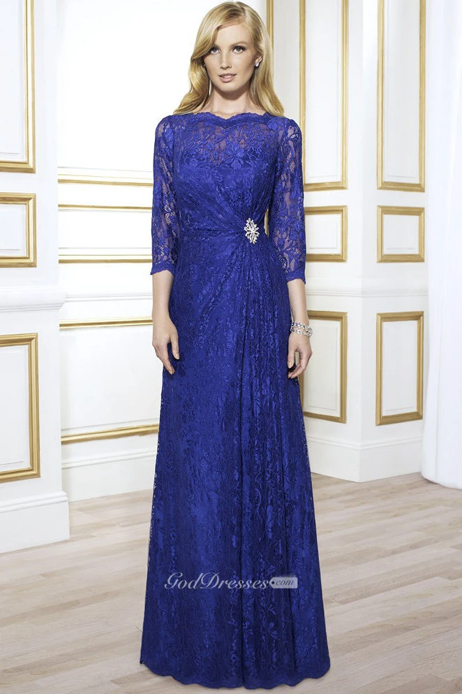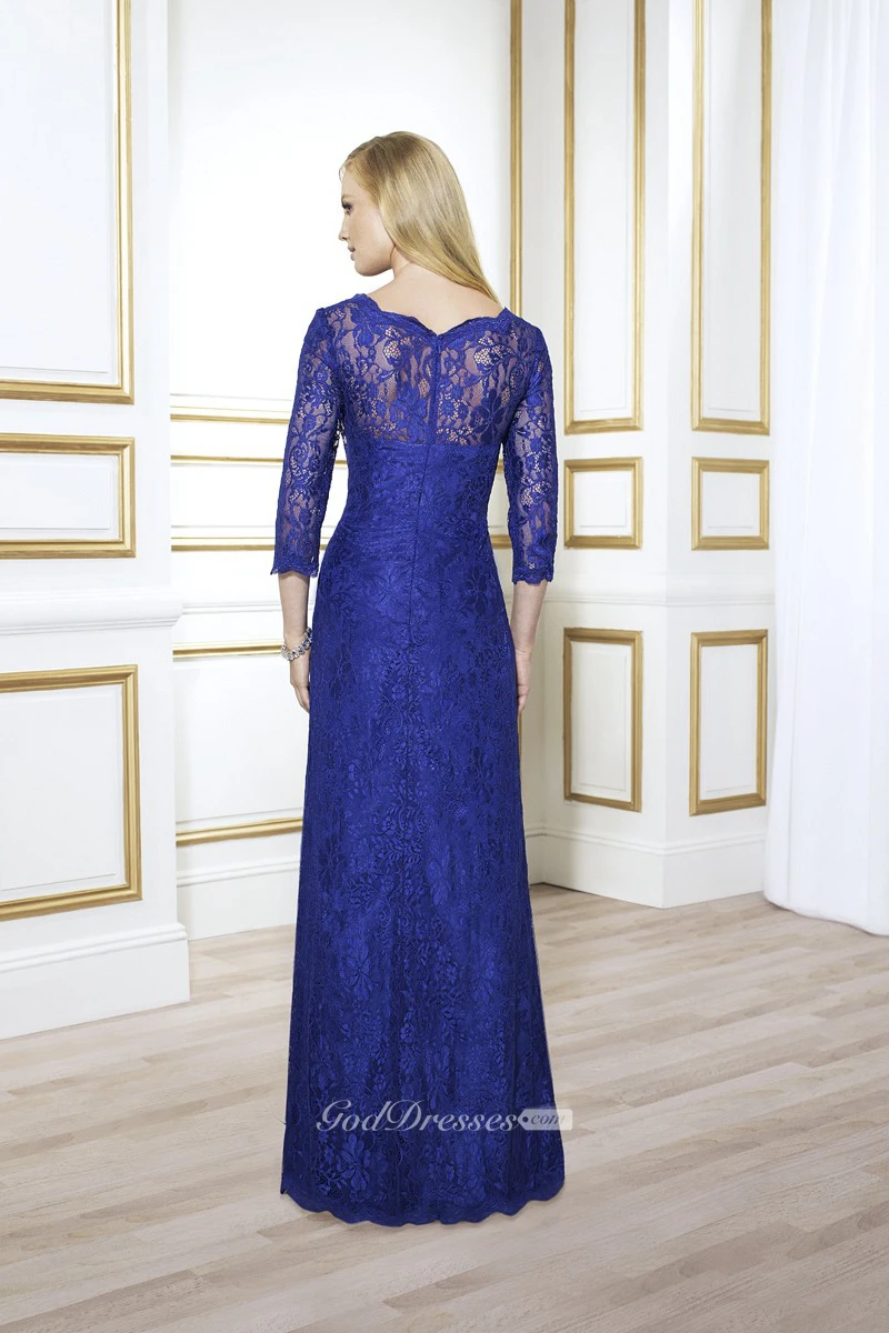Jewel Neck 3-4 Sleeve Lace Formal Dress With Illusion Back