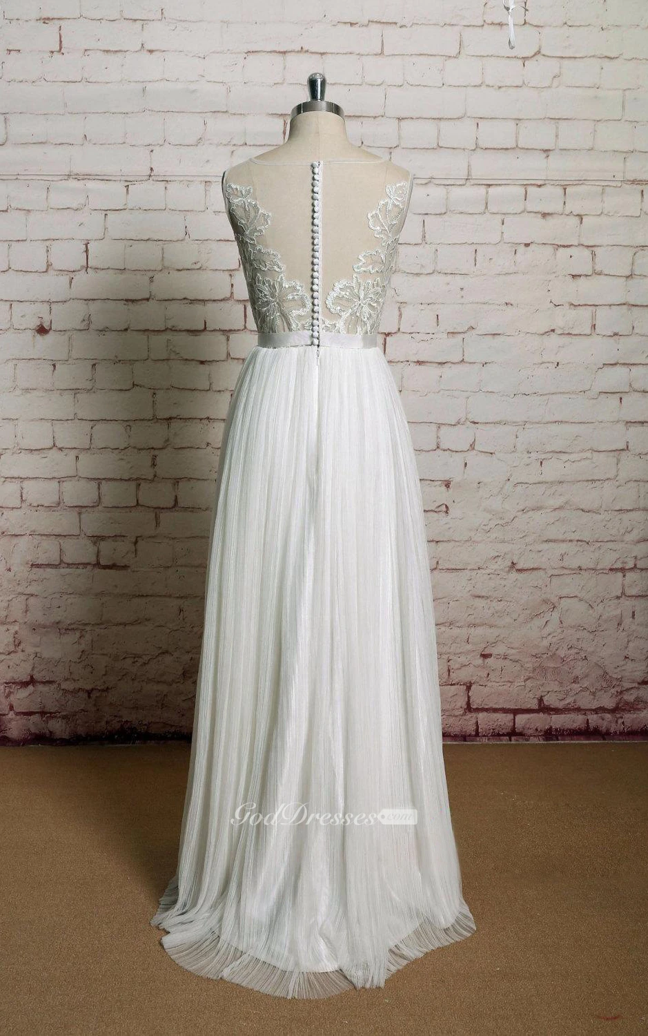 Jewel Neck A-Line Tulle Dress With Pleats and Illusion Back