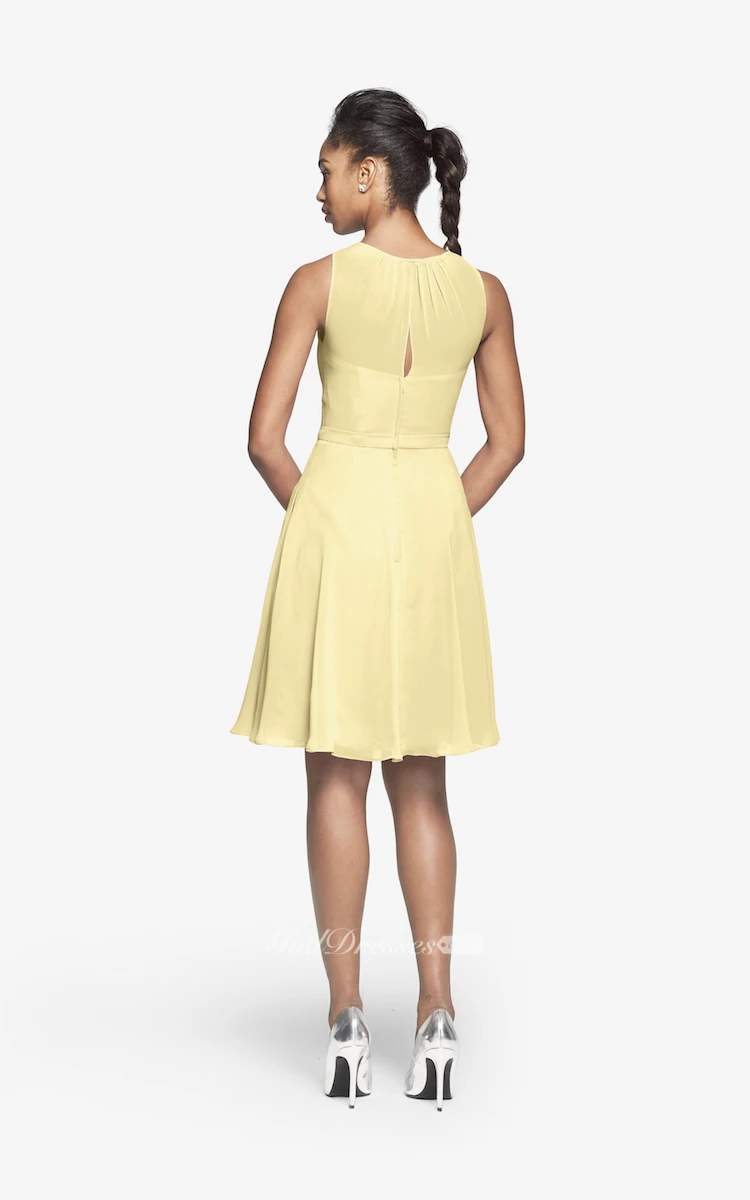 Jewel-Neck Chiffon Short Dress With Keyhole Back