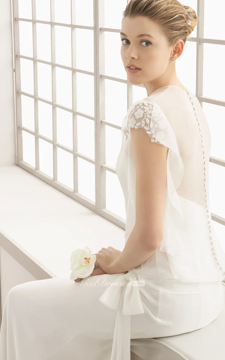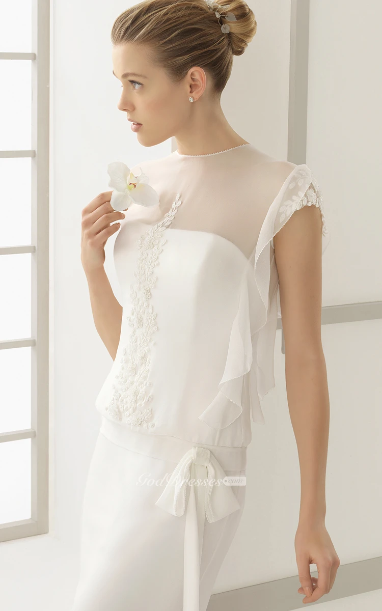 Jewel-Neck Graceful Dress With Chiffon Side Ruffled Jacket