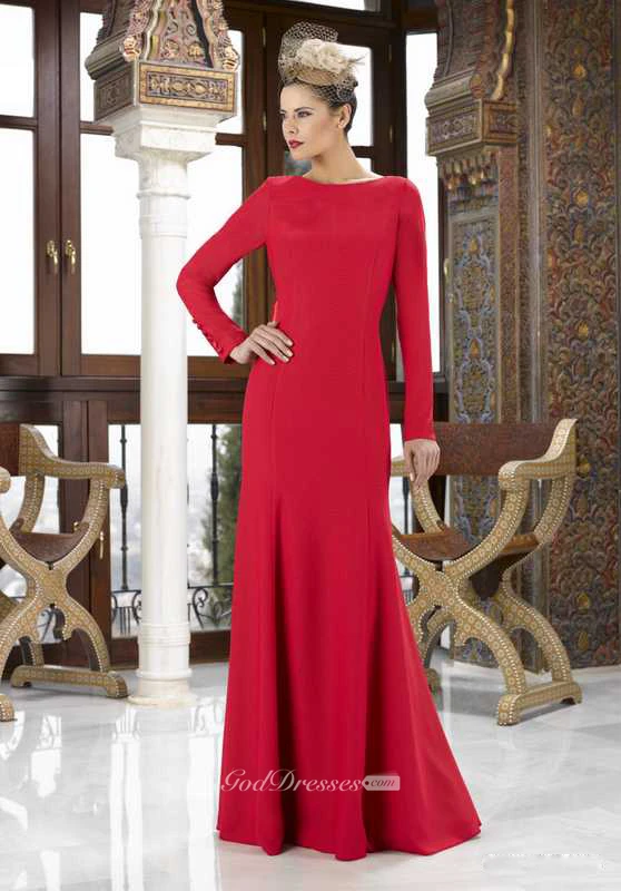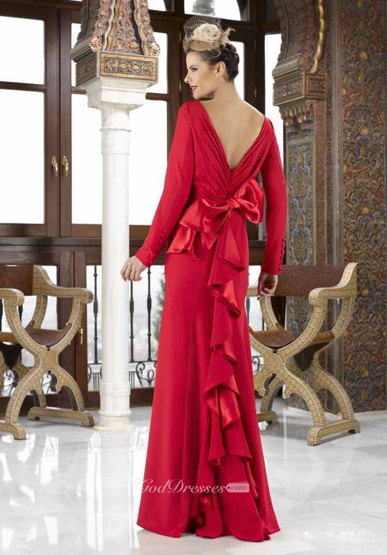 Jewel Neck Long Sleeve Bowed Jersey Mother Of The Bride Dress