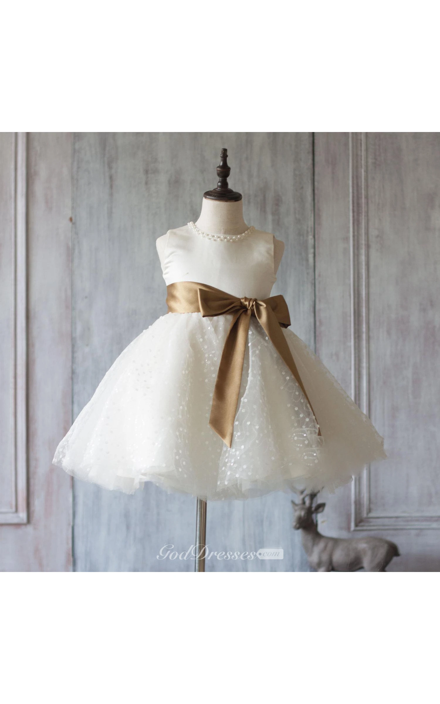 Jewel Neck Sleeveless Empire A-line Knee Length Tulle Dress With Satin Sash
