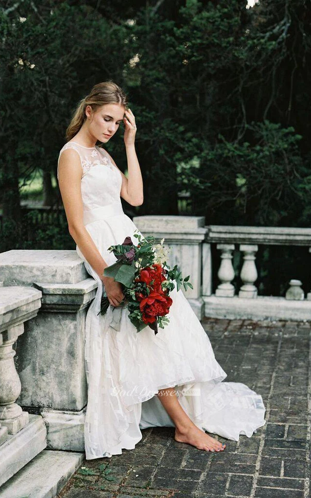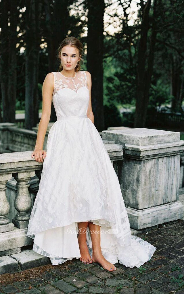 Jewel Sleeveless A-Line High-Low Dress With Appliques