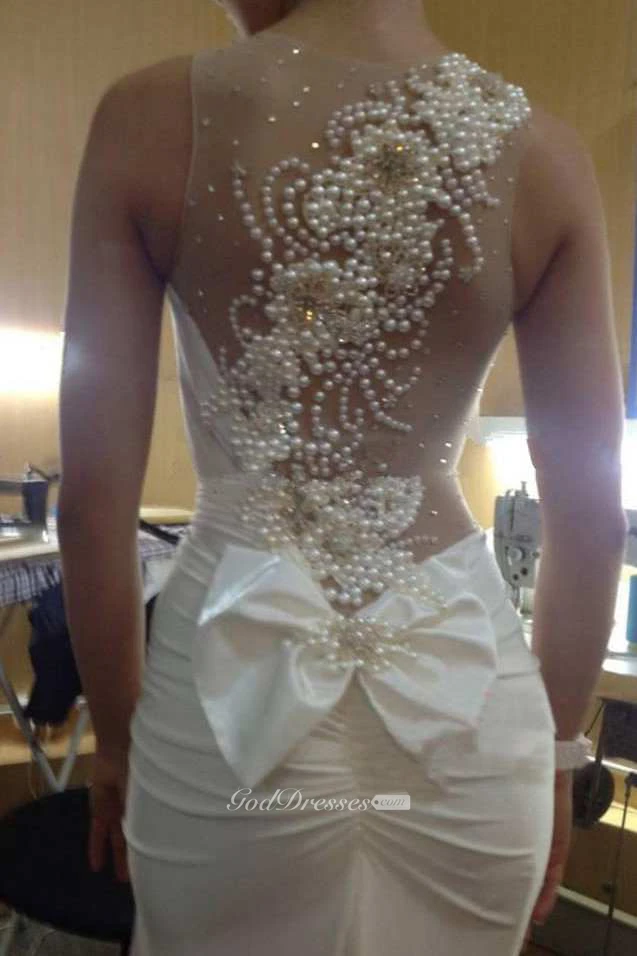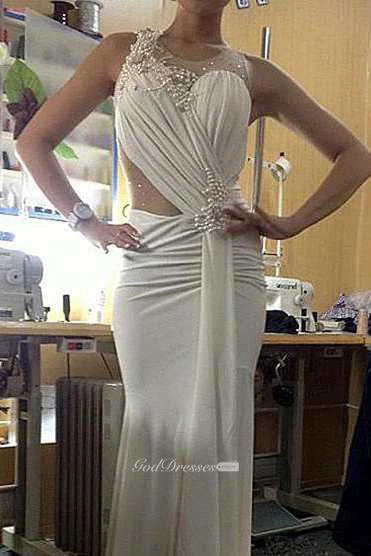 Jewel Sleeveless Ruched Mermaid Jersey Dress