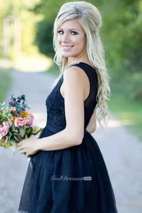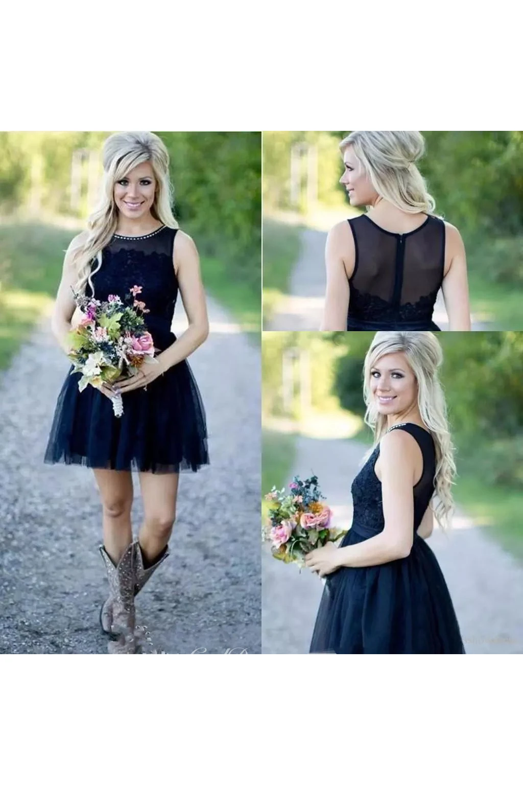 Jewel Sleeveless Short Lace Tulle A-Line Dress