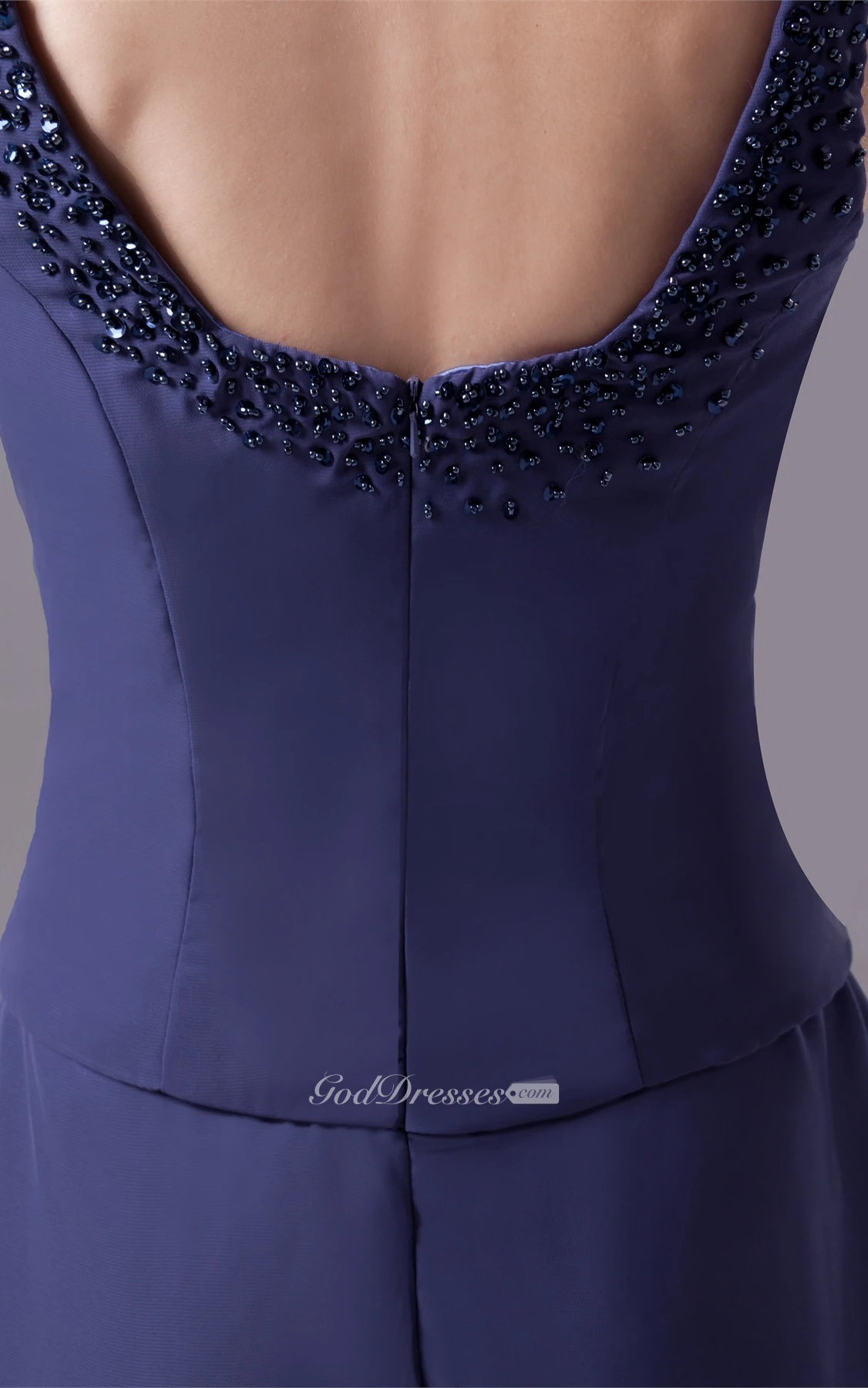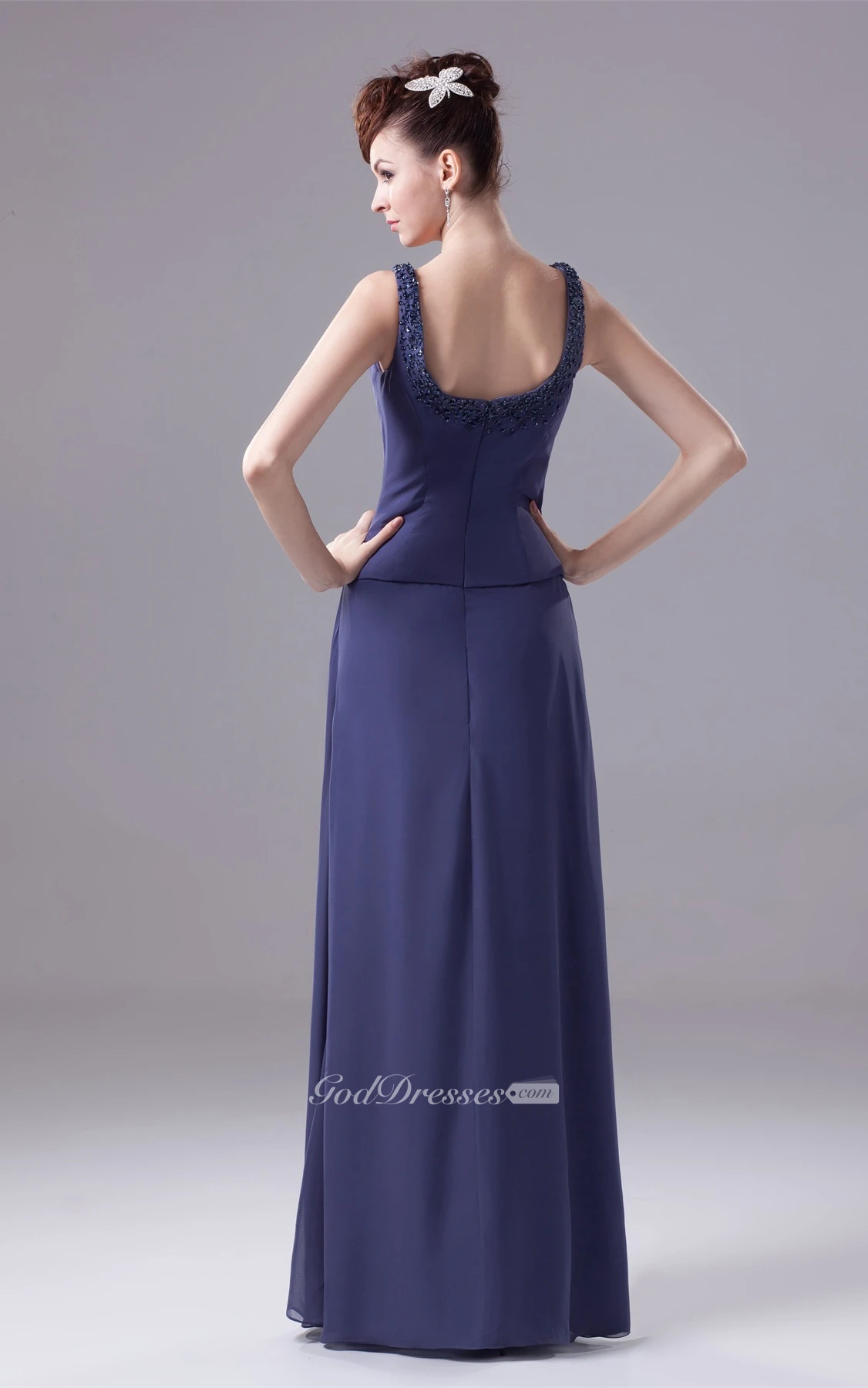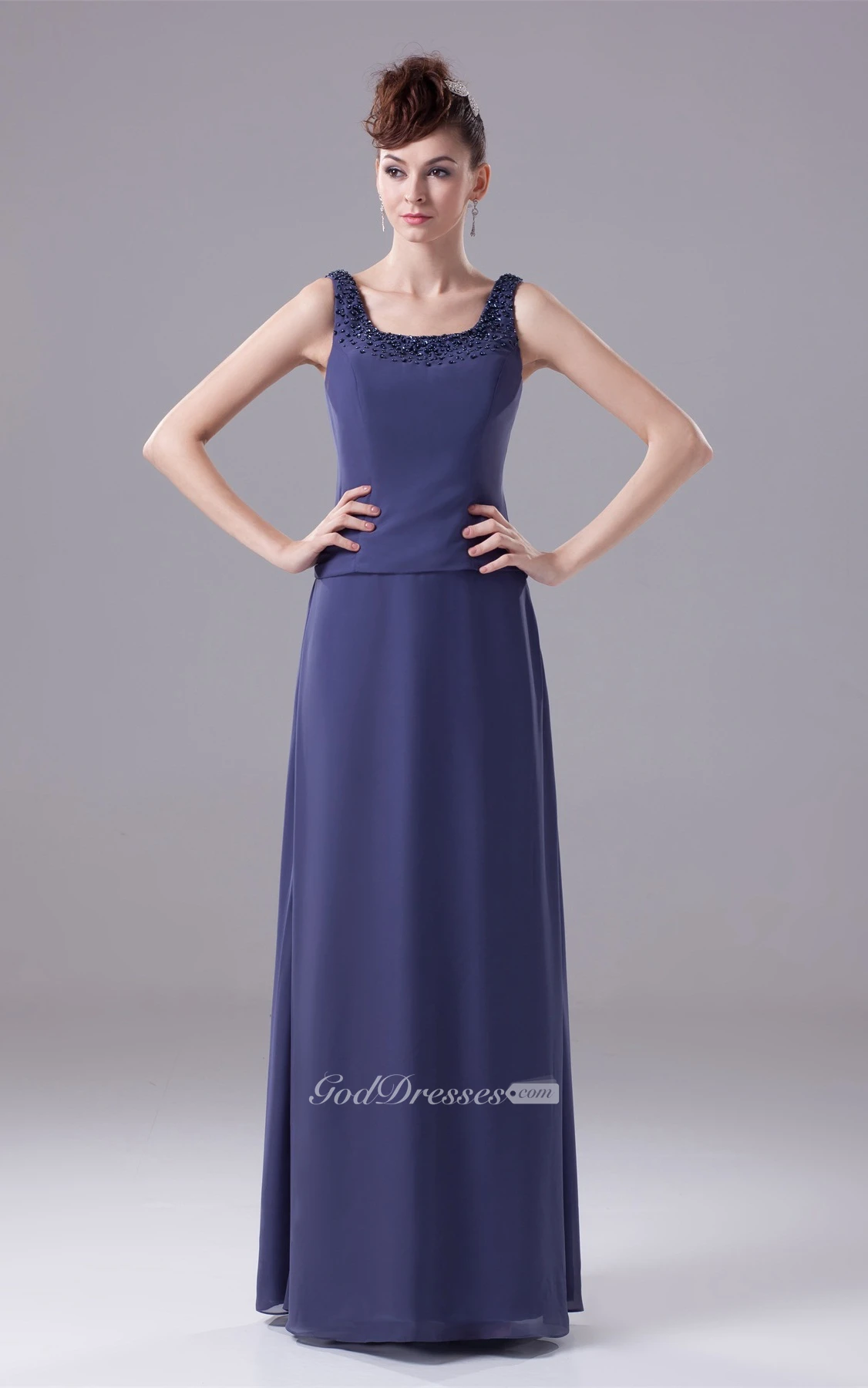 Jeweled Sleeveless Floor Length Square A-Line Dress With Zipper Back