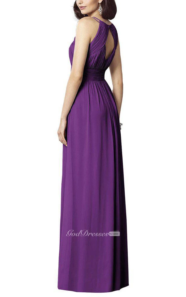 Keyhole Ruched Bodice Long Dress with Keyhole Back