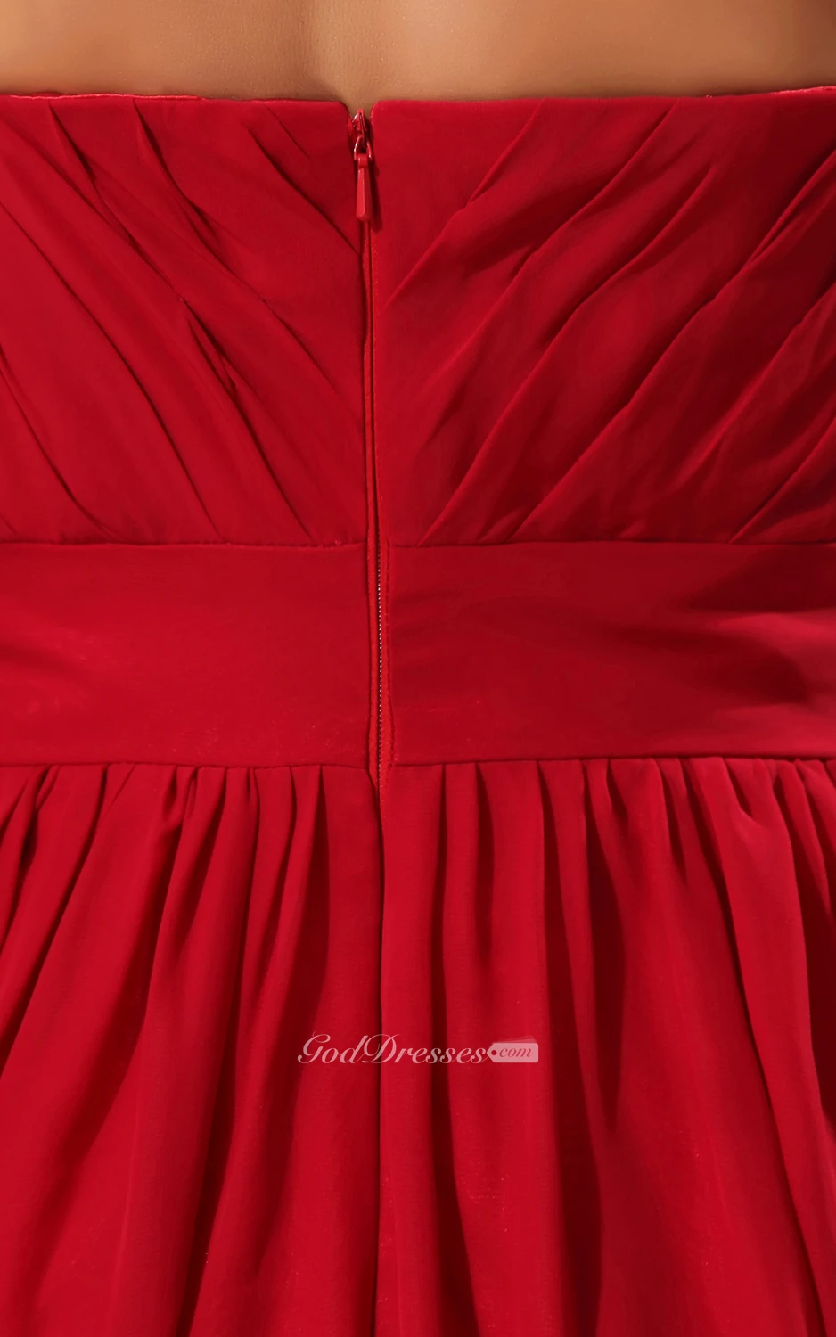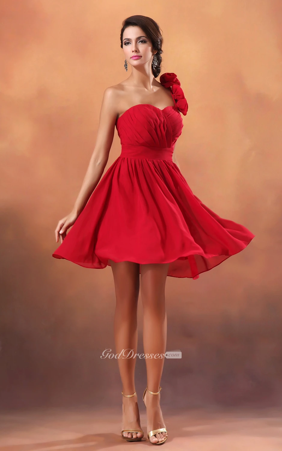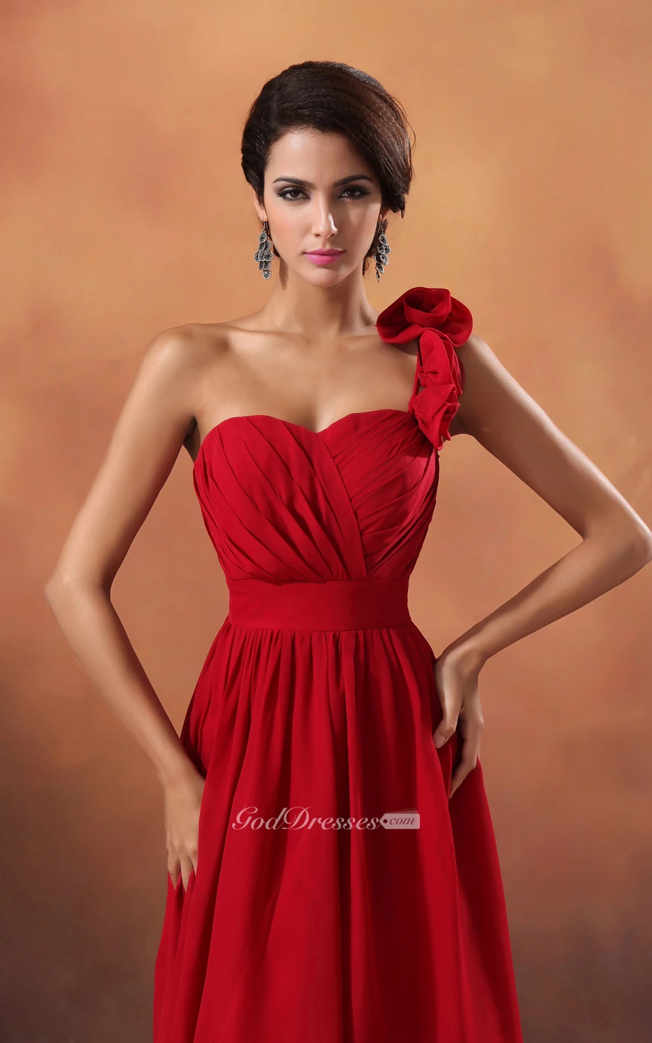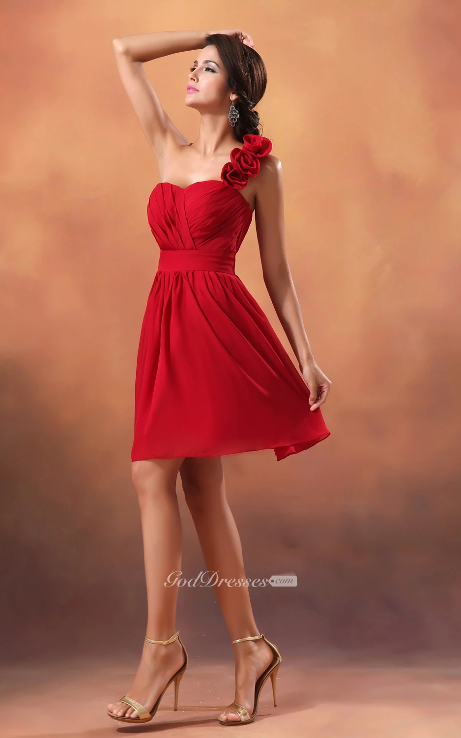 Knee-Length Chiffon Dress With Pleating and Floral Strap