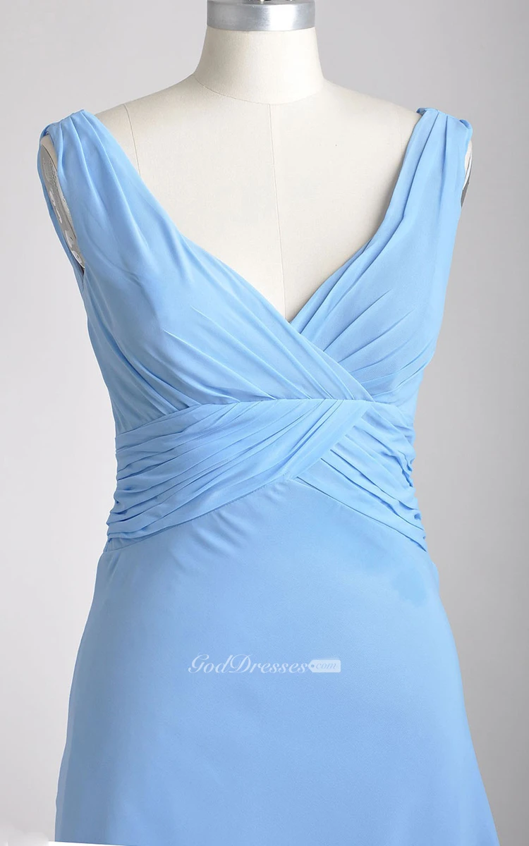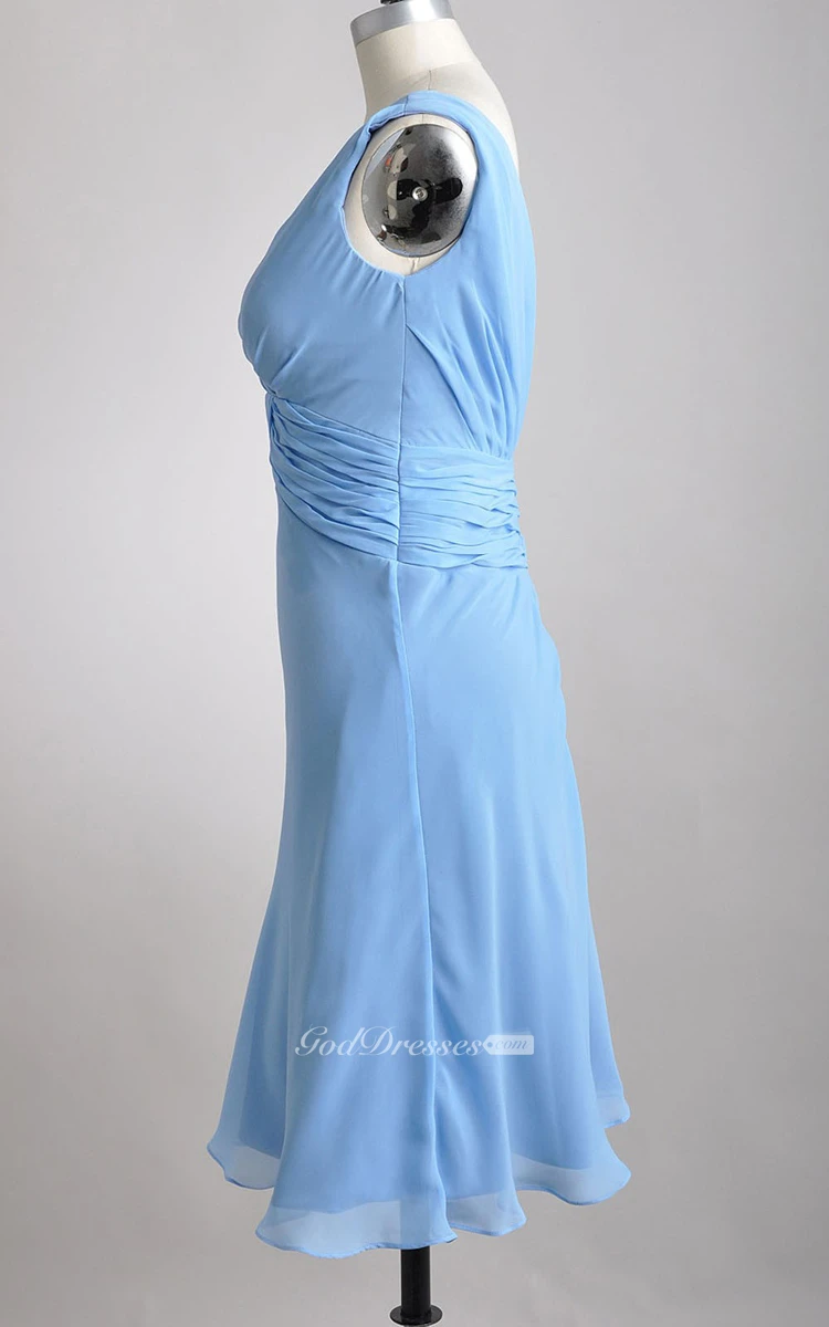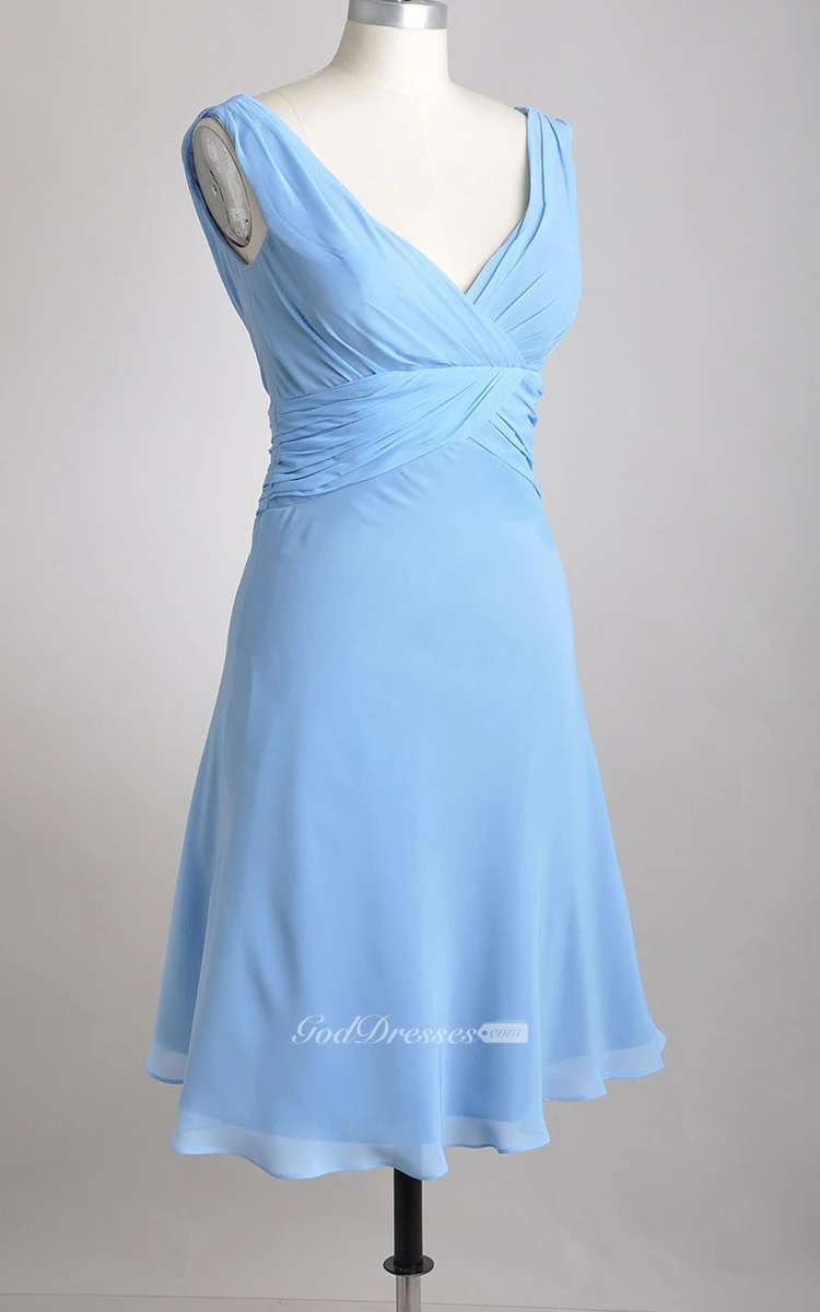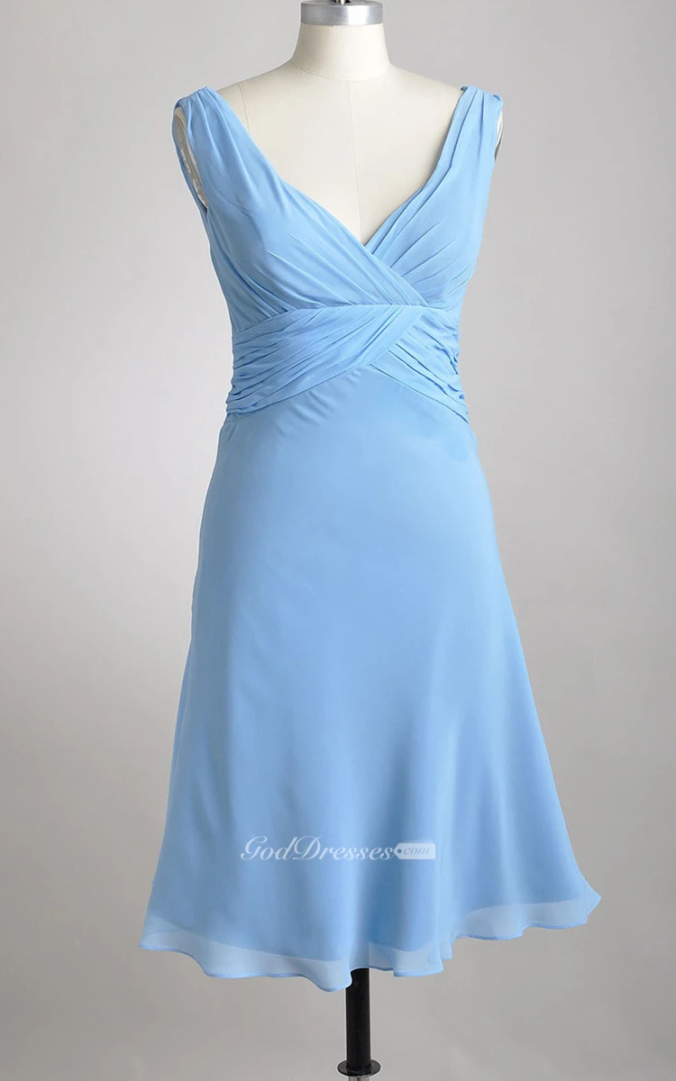 Knee-length Deep-V A-line Pleated Chiffon Bridesmaid Dress