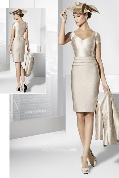 Knee-Length Half-Sleeve Jacket Satin Prom Dress