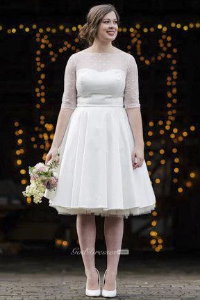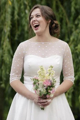 Knee Length Half Sleeve Satin Dress With Keyhole Back