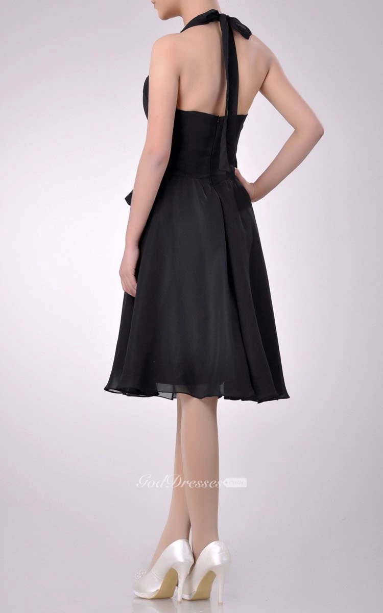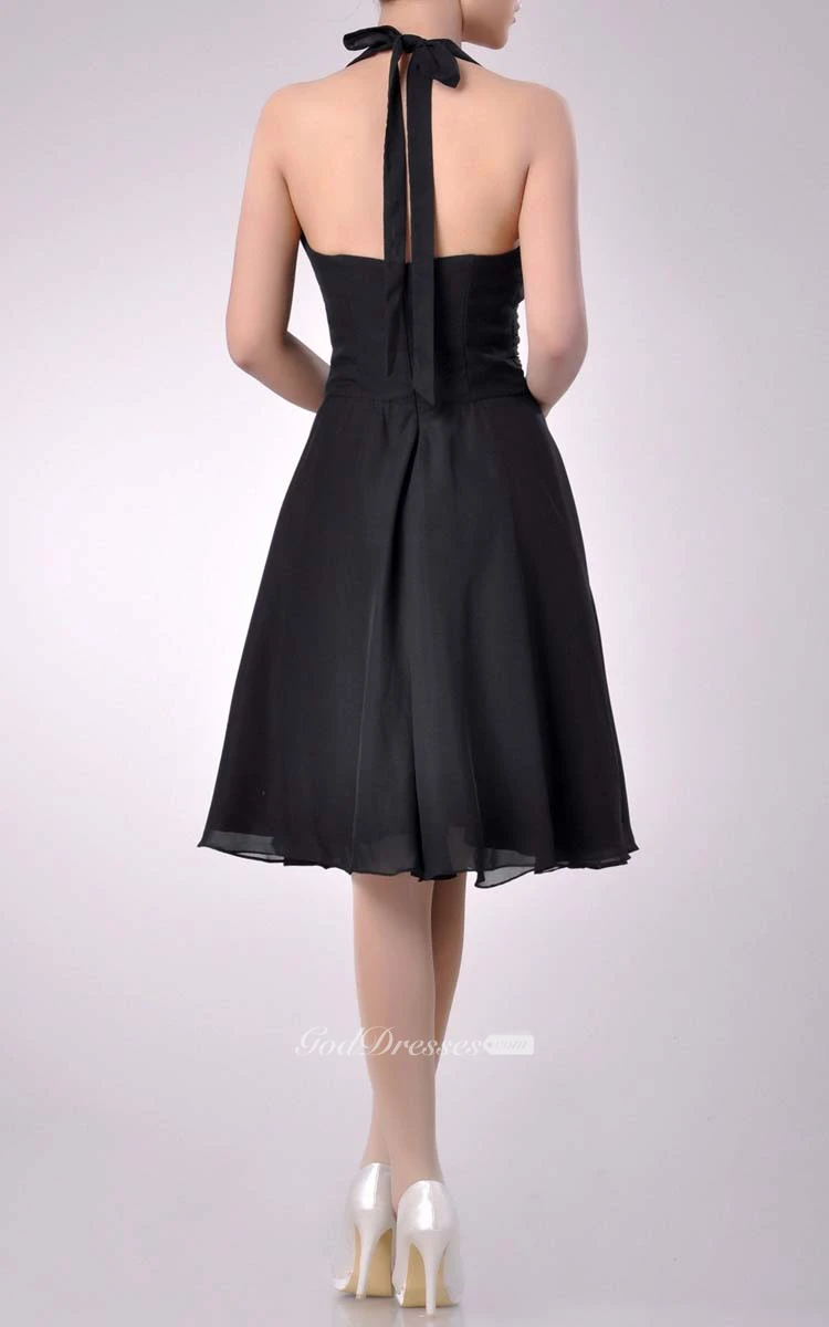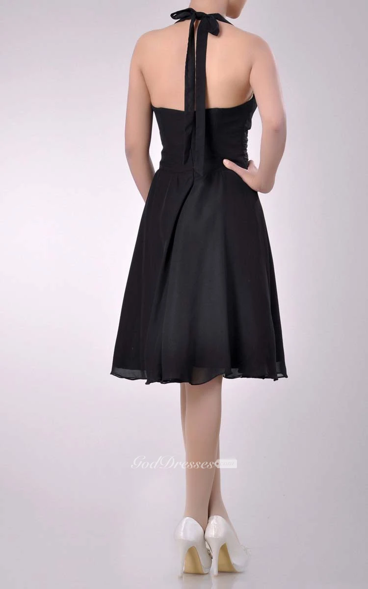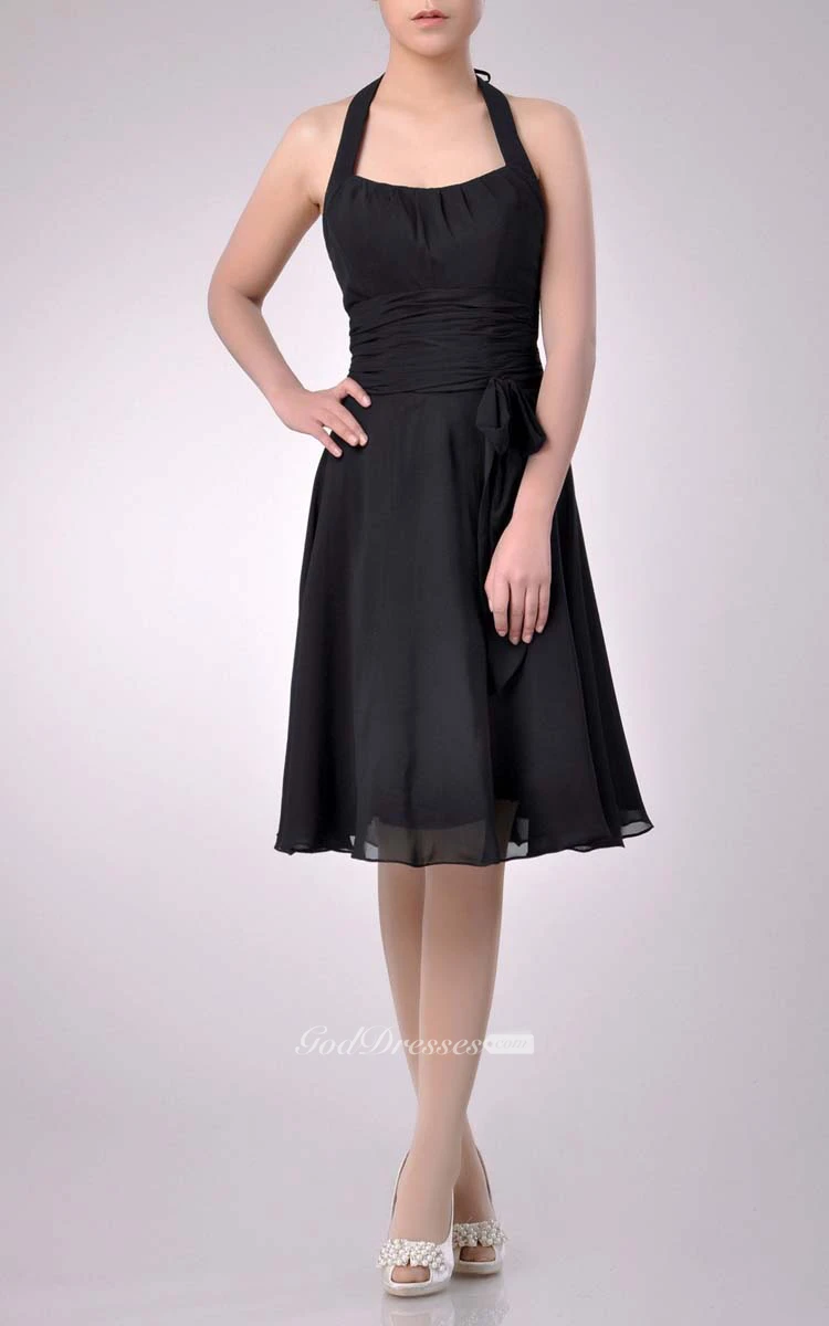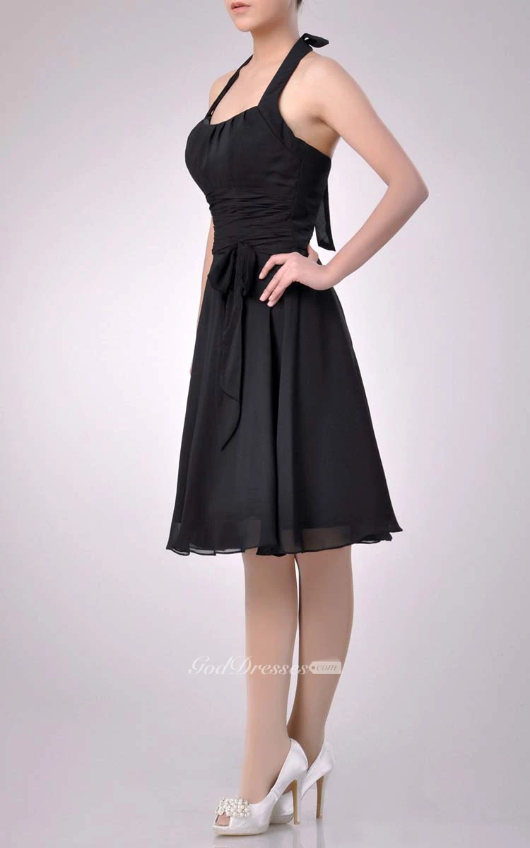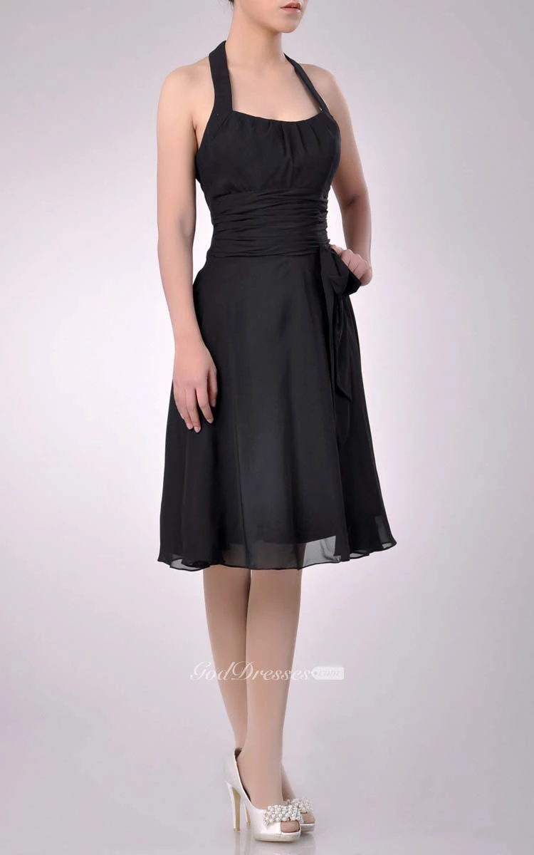 Knee-length Halter Square A-line Chiffon Bridesmaid Dress With Ruching