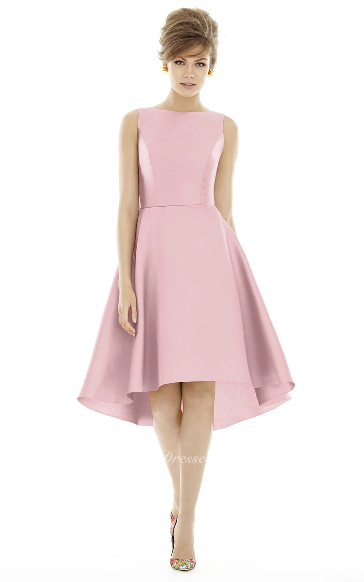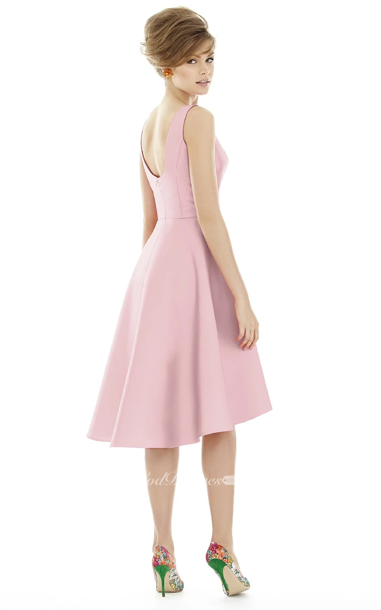 Knee-Length Jewel Satin Dress with Pleats and V-Back