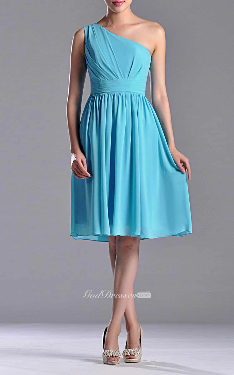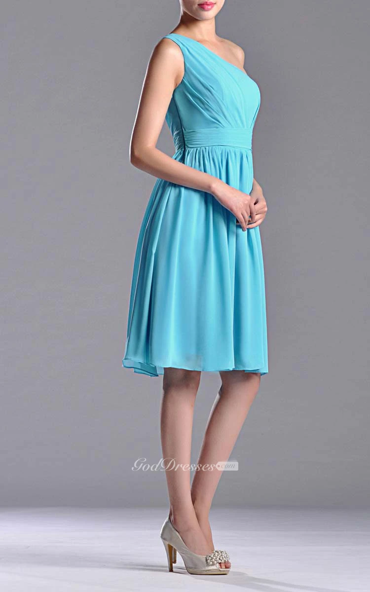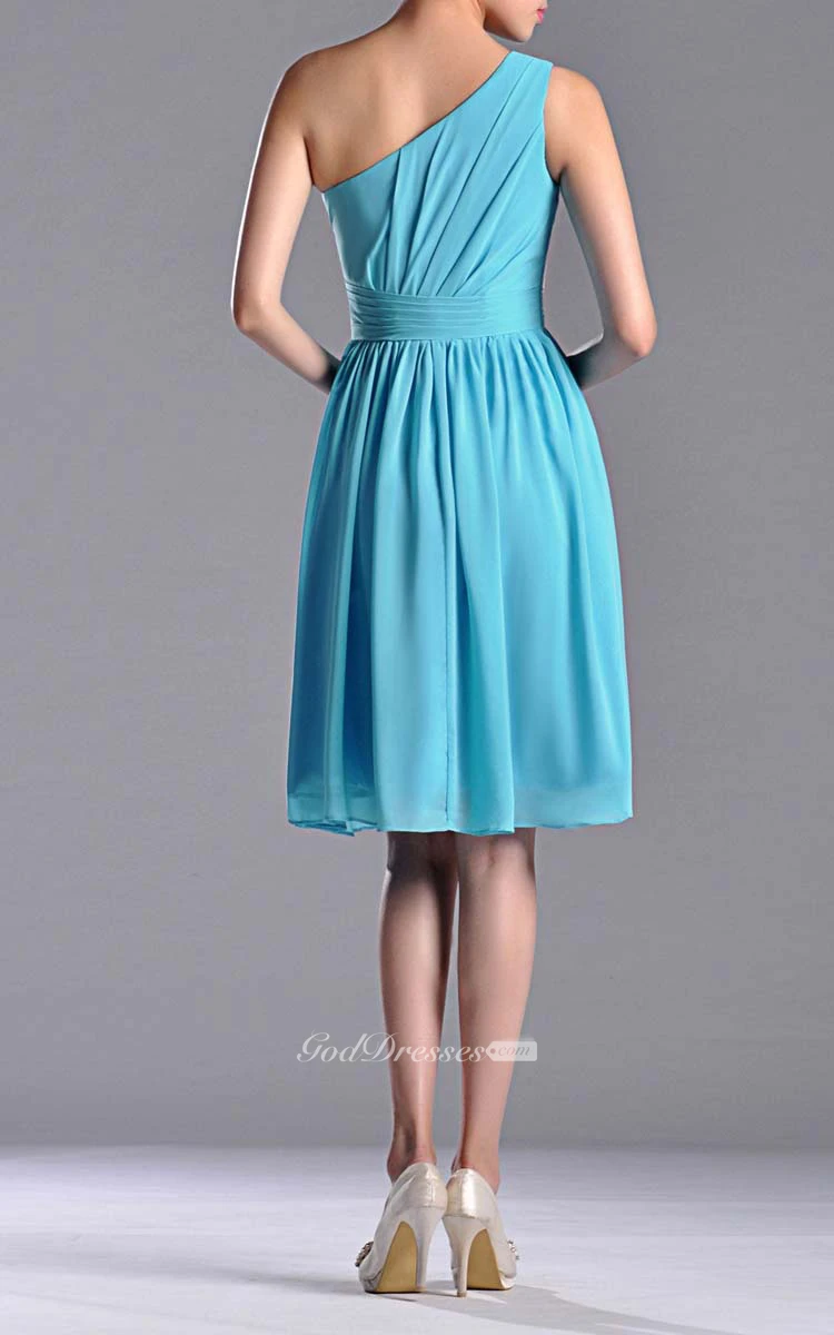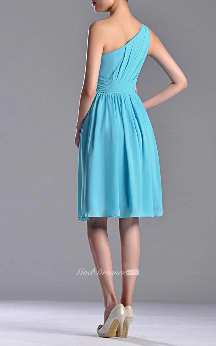 Knee-length One-shoulder A-line Pleated Chiffon Bridesmaid Dress