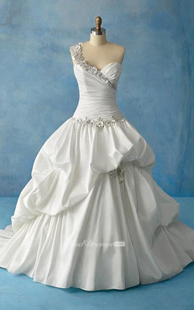 Knee-Length One-Shoulder Pleats Keyhole Satin Taffeta Dress