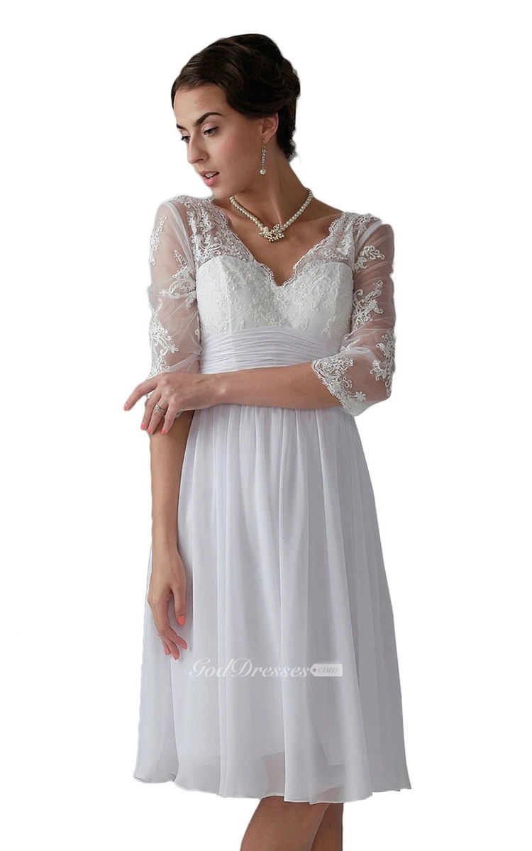Knee-length Scalloped A-line Dress With Lace Appliques