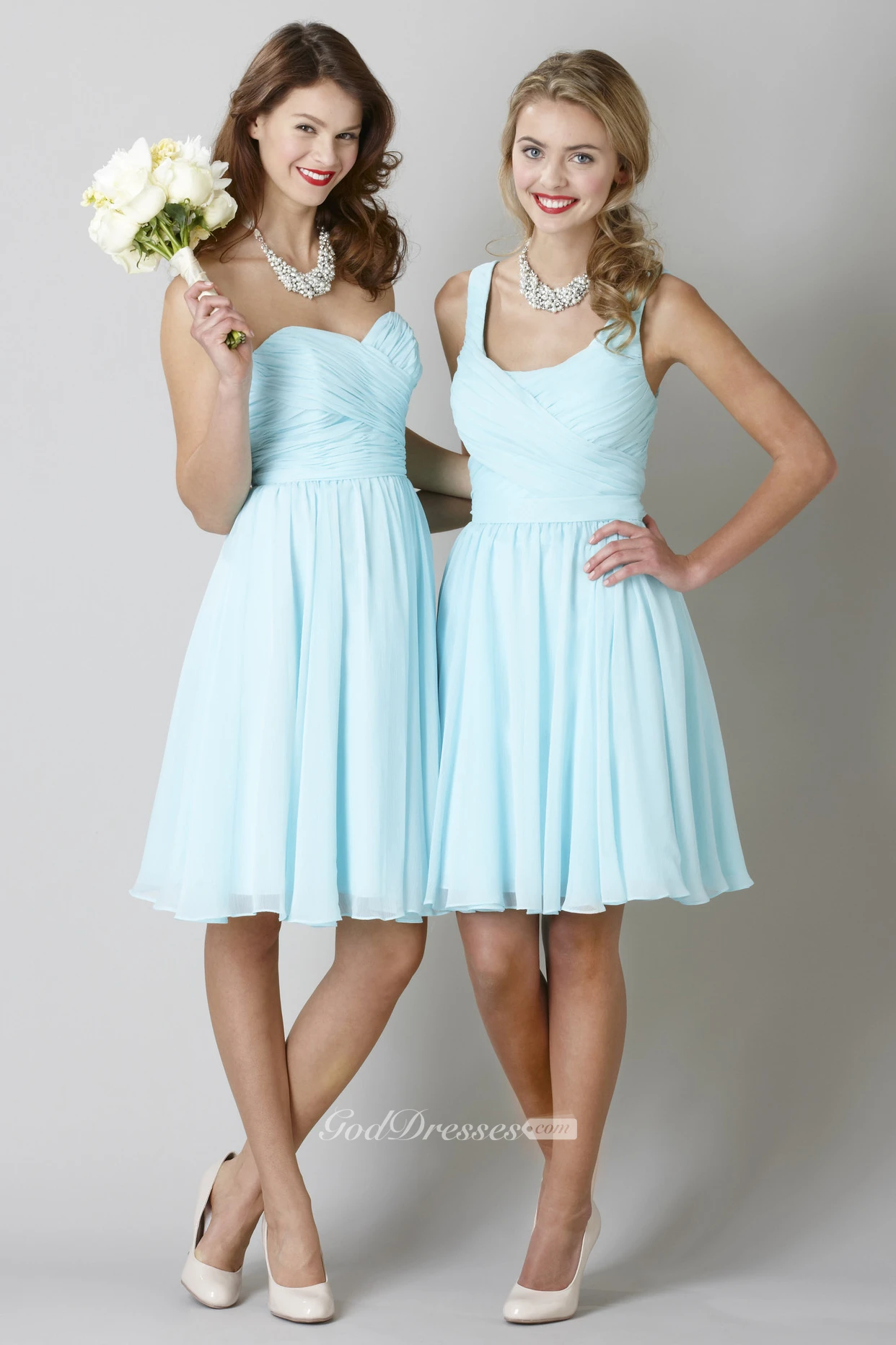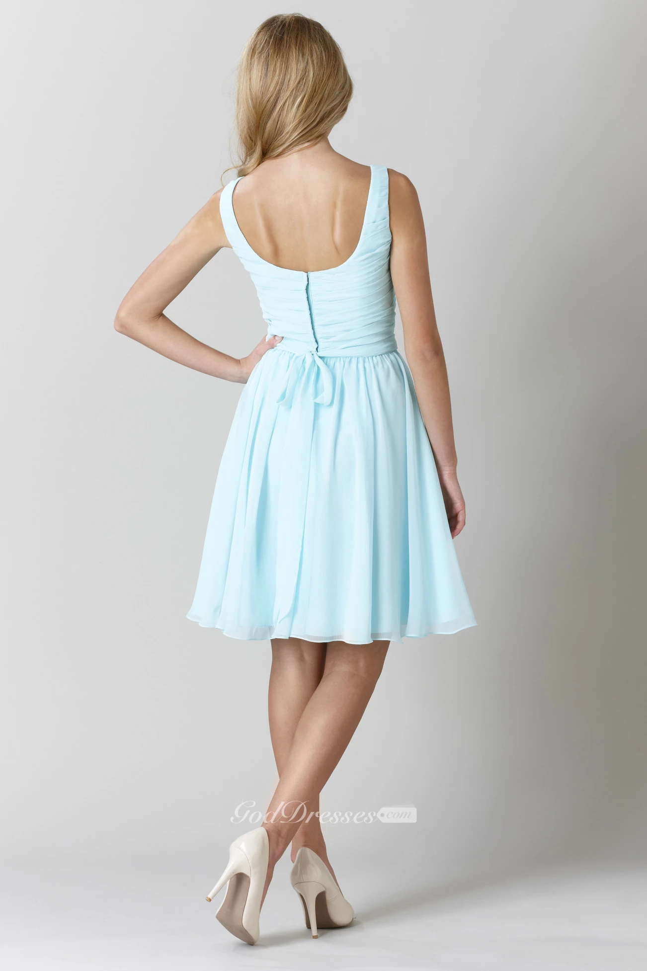 Knee-Length Sleeveless Strapped Criss-Cross Chiffon Bridesmaid Dress