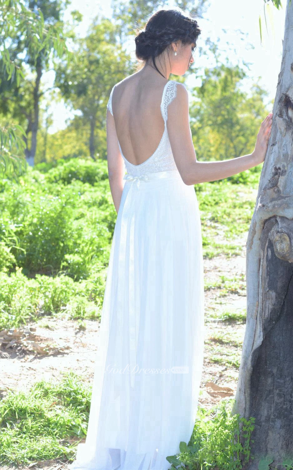 Lace A-Line Sleeveless V-Neck Dress With Open Back