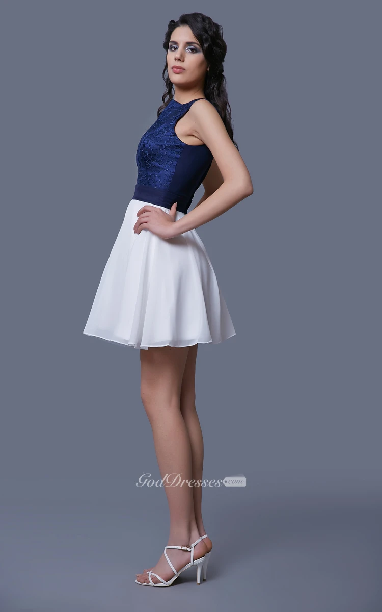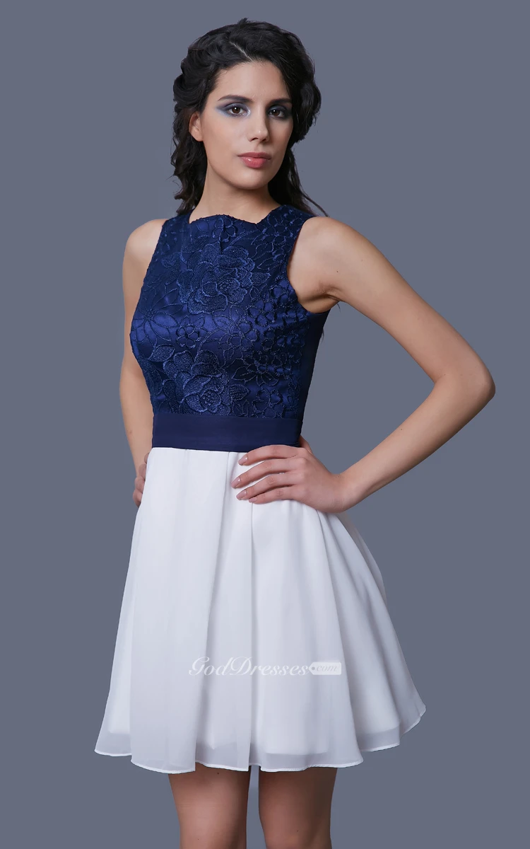 Lace and Chiffon Short A-Line Sleeveless Dress