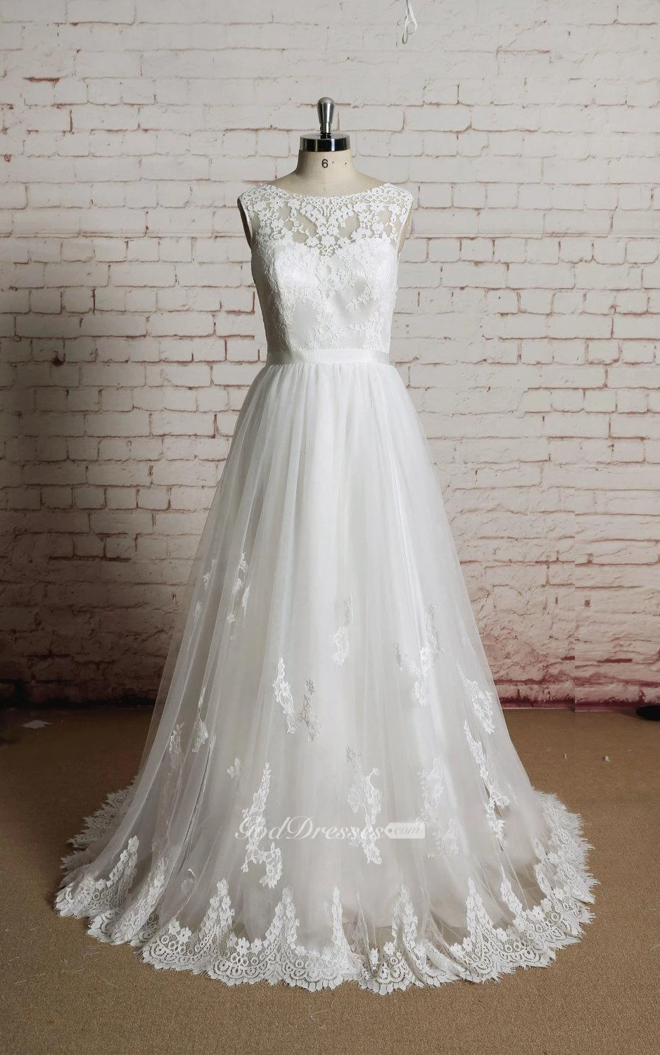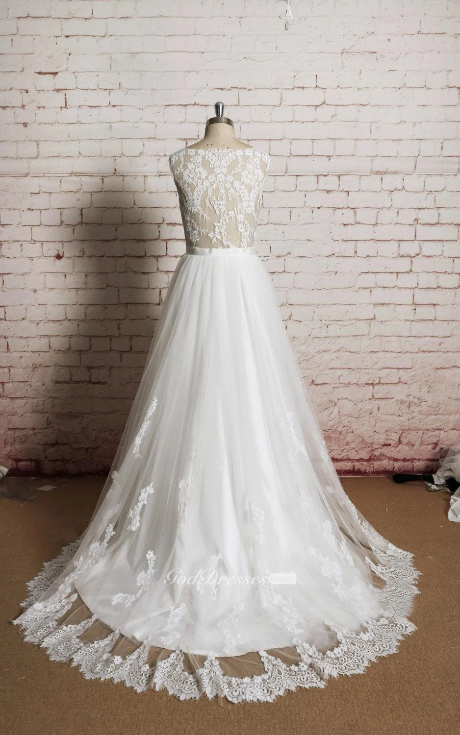 Lace and Tulle Sleeveless A-Line Dress With Illusion Back