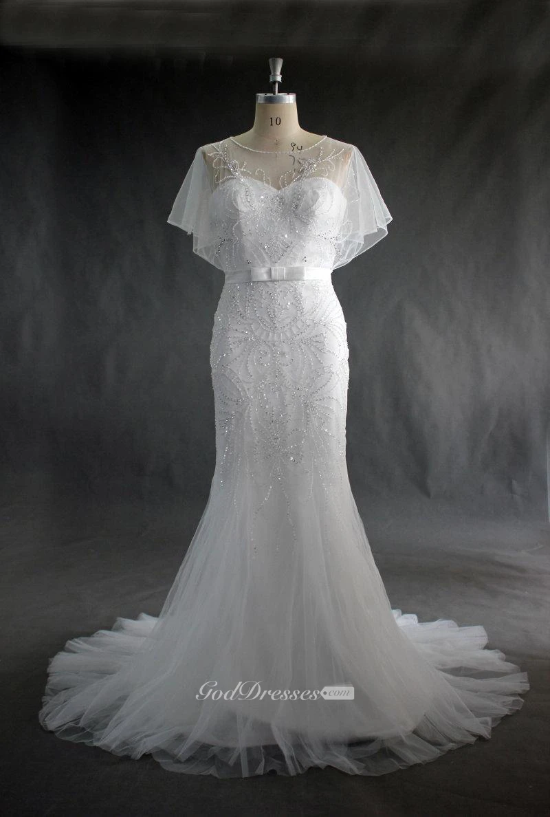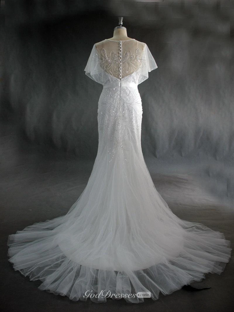 Lace Embellished Tulle Mermaid Dress With Illusion Back