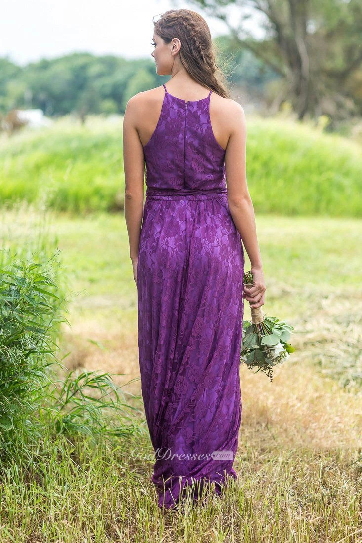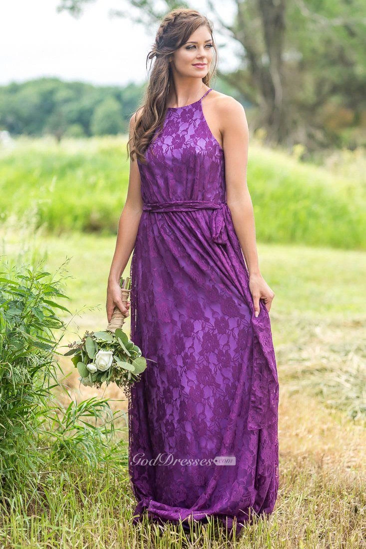 Lace Halter Floor-length Bridesmaid Dress with Bow