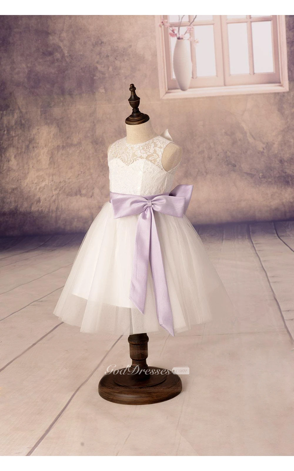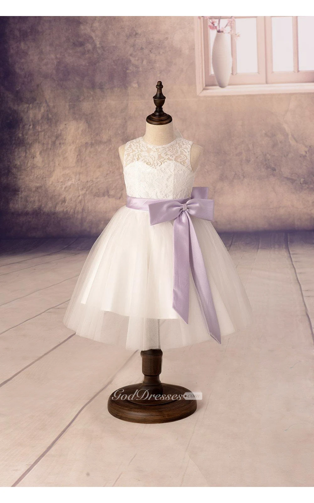 Lace High Neck Sleeveless Pleated Tulle Ankle Length Dress With Sash
